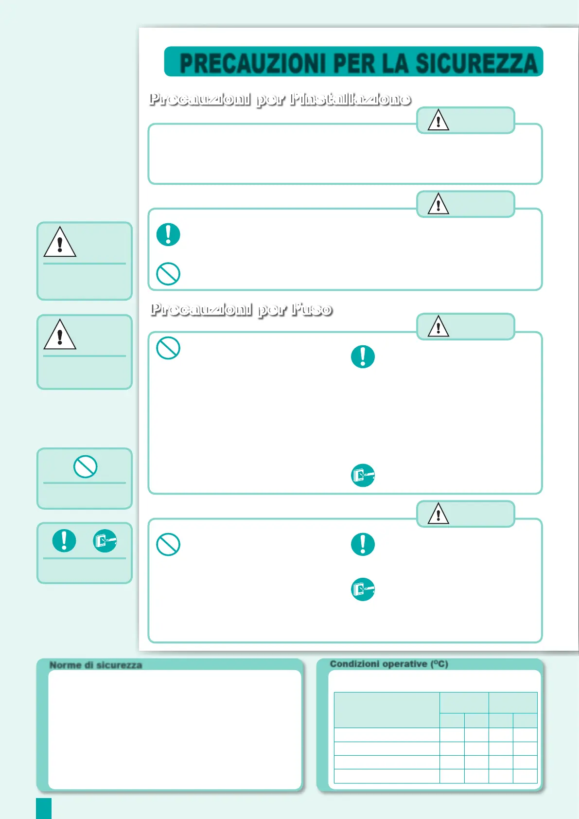 • Un’installazione scorretta può causare perdite, folgorazioni o incendi. Per l’installazione rivolgersi a un