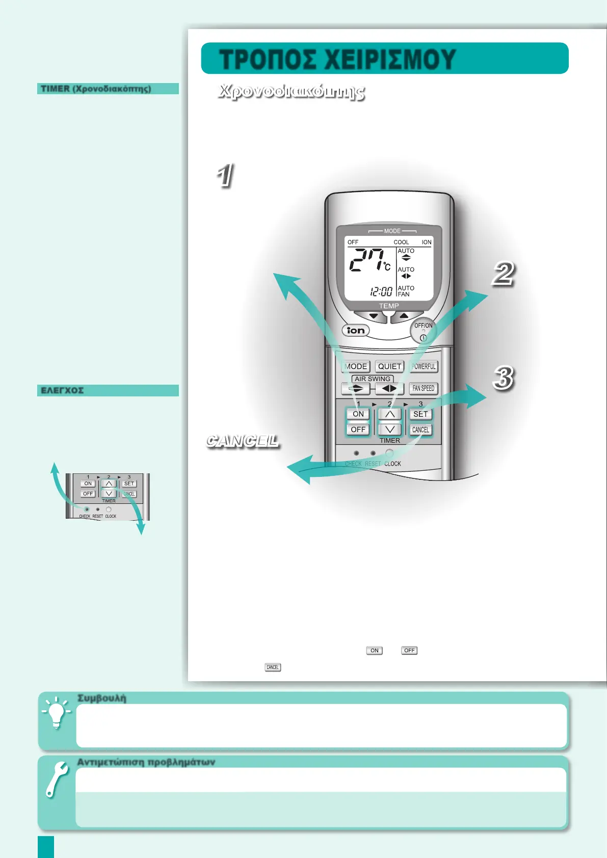 ● Για τη διευκόλυνσή σας, μπορείτε να ρυθμίσετε την αυτόματη λειτουργία του κλιματιστικού, χρησιμοποιώντας το χρονοδιακόπτη ON