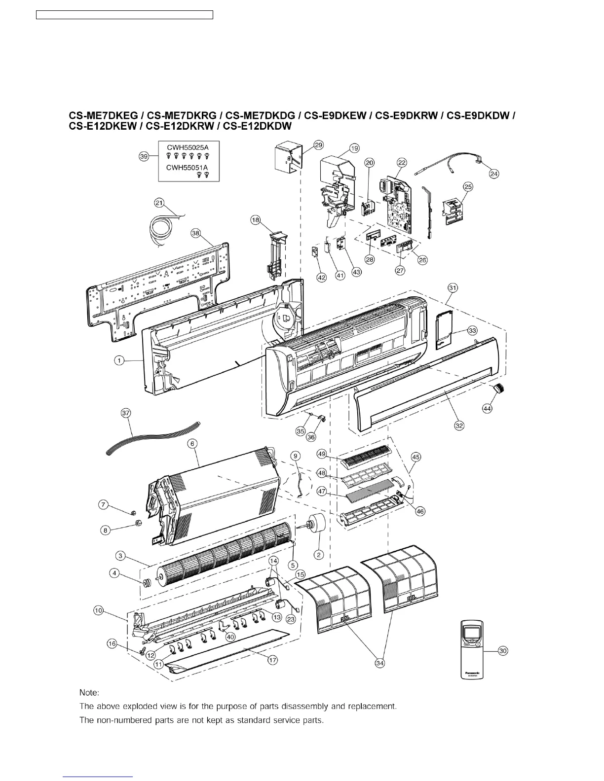 Panasonic CS-E18DKRW - 17 Exploded View and Replacement Parts List; 17.1. Wall Type Parts