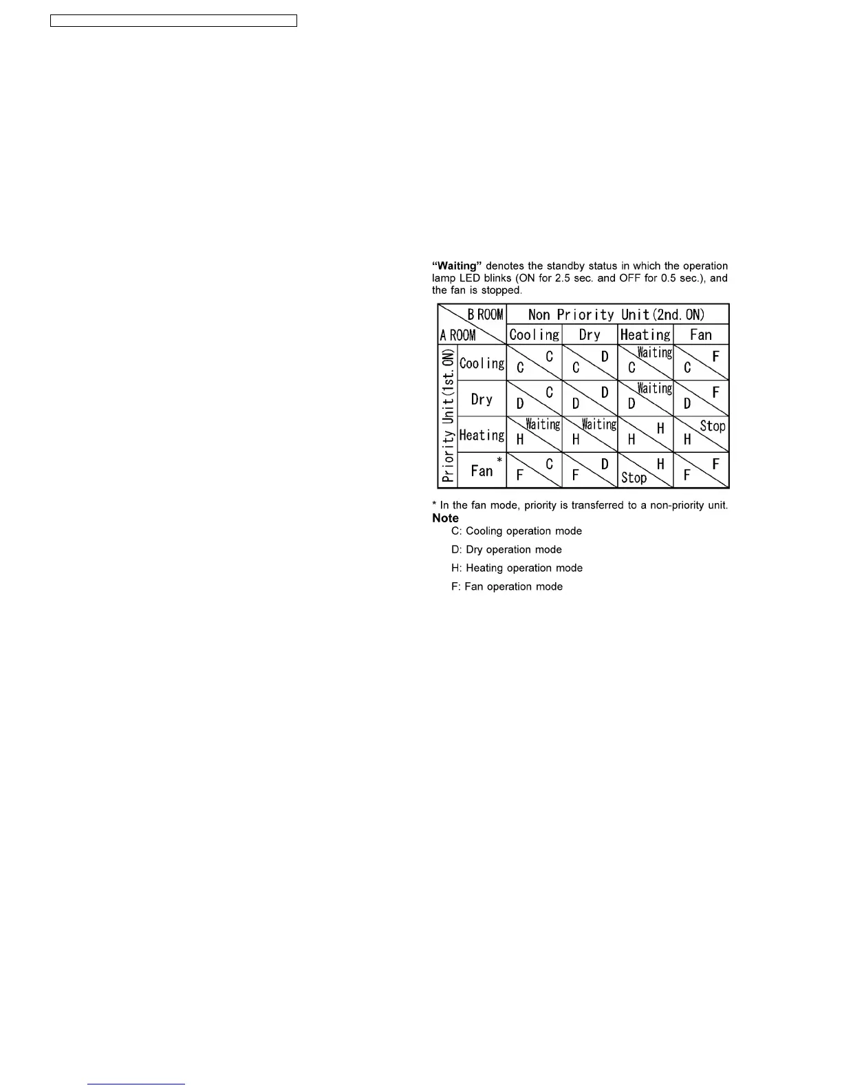 fan operation, the priority is transferred to other indoor