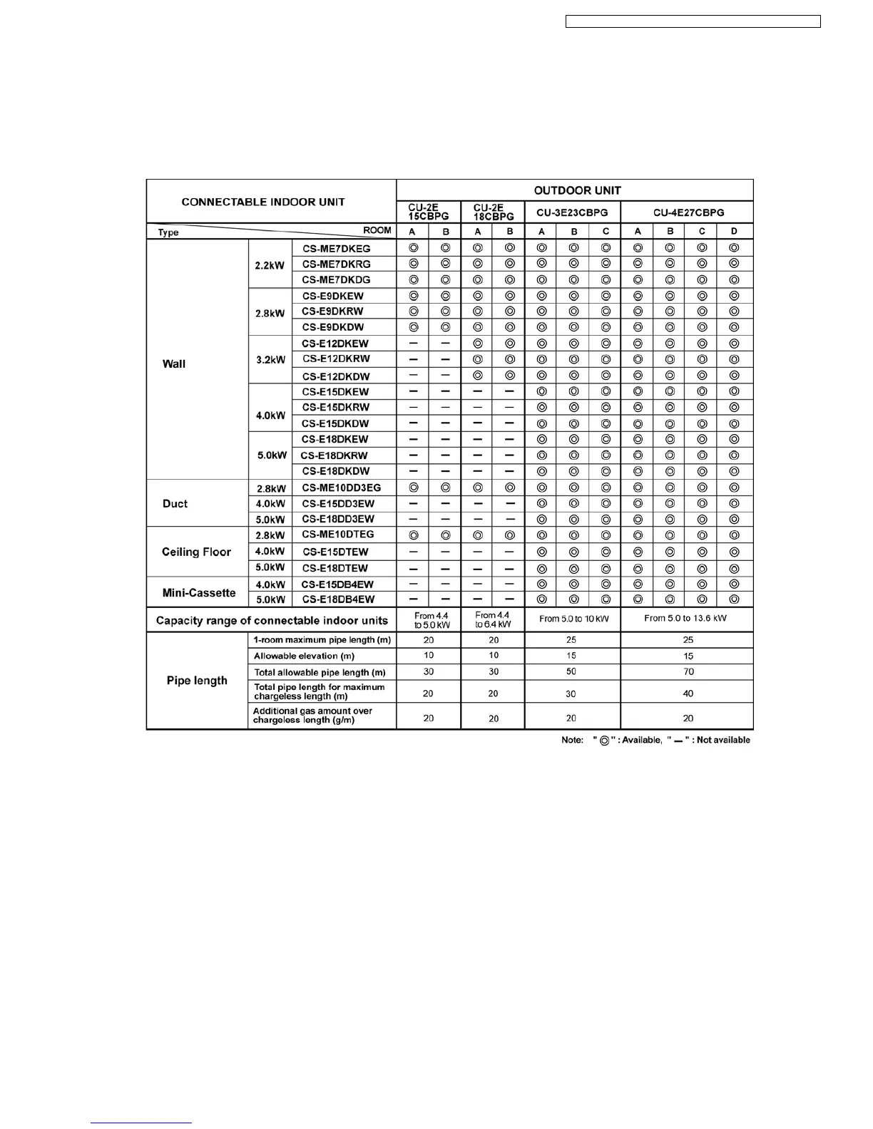 Example: The below indoor units combination is possible to connect CU-2E15CBPG. (Total nominal capacity of indoor