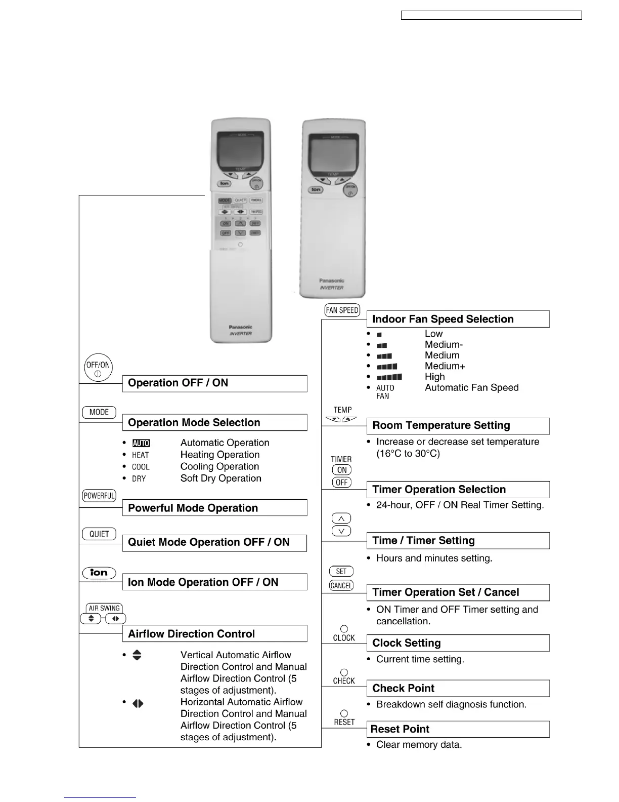 Panasonic CS-E18DTEW - Feature Operation (GK-series); Fan Speed and Airflow Control; Air Quality, Quiet, and Powerful Modes; Timer Setting (GK-series)