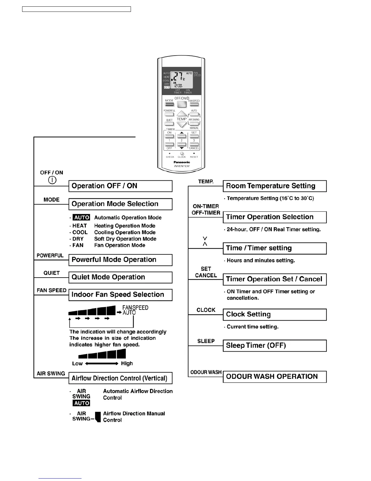 Panasonic CS-E18DTEW - How to Operate (DB, DD, DT, GF-series); Remote Control Preparation; Mode Operation