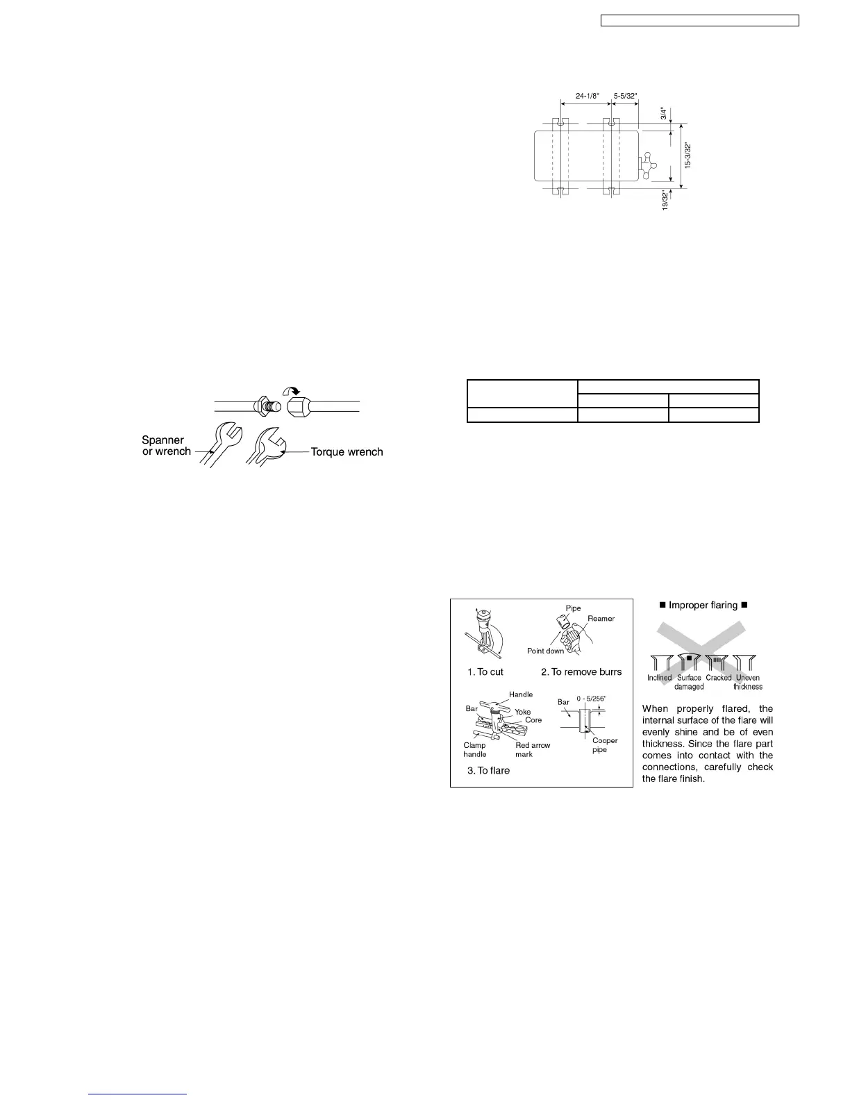 Decide piping length and then cut by using pipe cutter. Remove burrs from cut edge. Make flare after inserting the flare nut