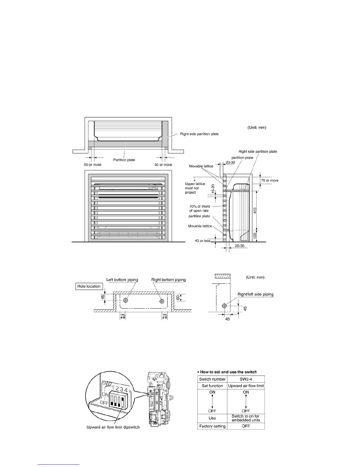 Change the upward air flow limit dipswitch (SW2-4) to ON to limit the upward air flow.