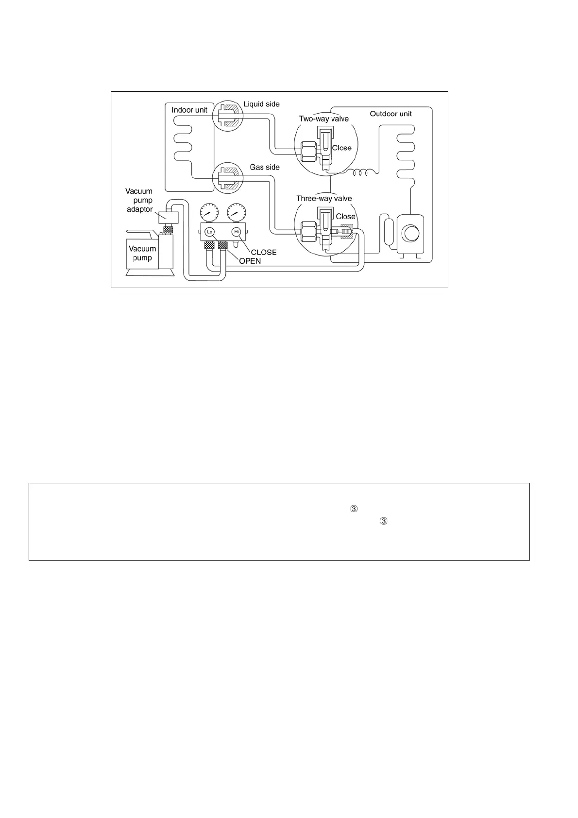 WHEN INSTALLING AN AIR CONDITIONER, BE SURE TO EVACUATE THE AIR INSIDE THE INDOOR UNIT AND PIPES in the
