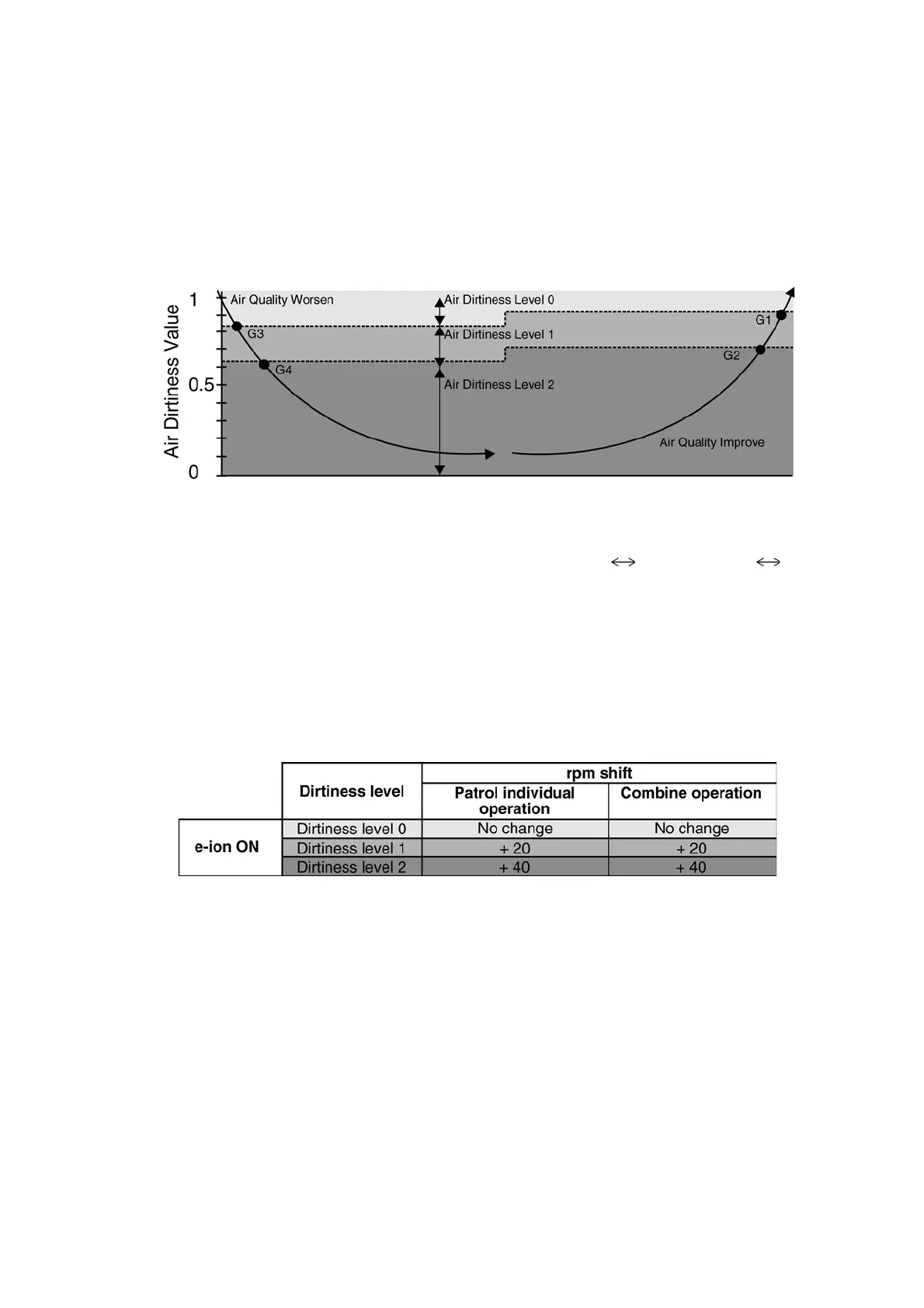 • During Patrol individual operation if e-ion stops, Airflow direction louver closed.