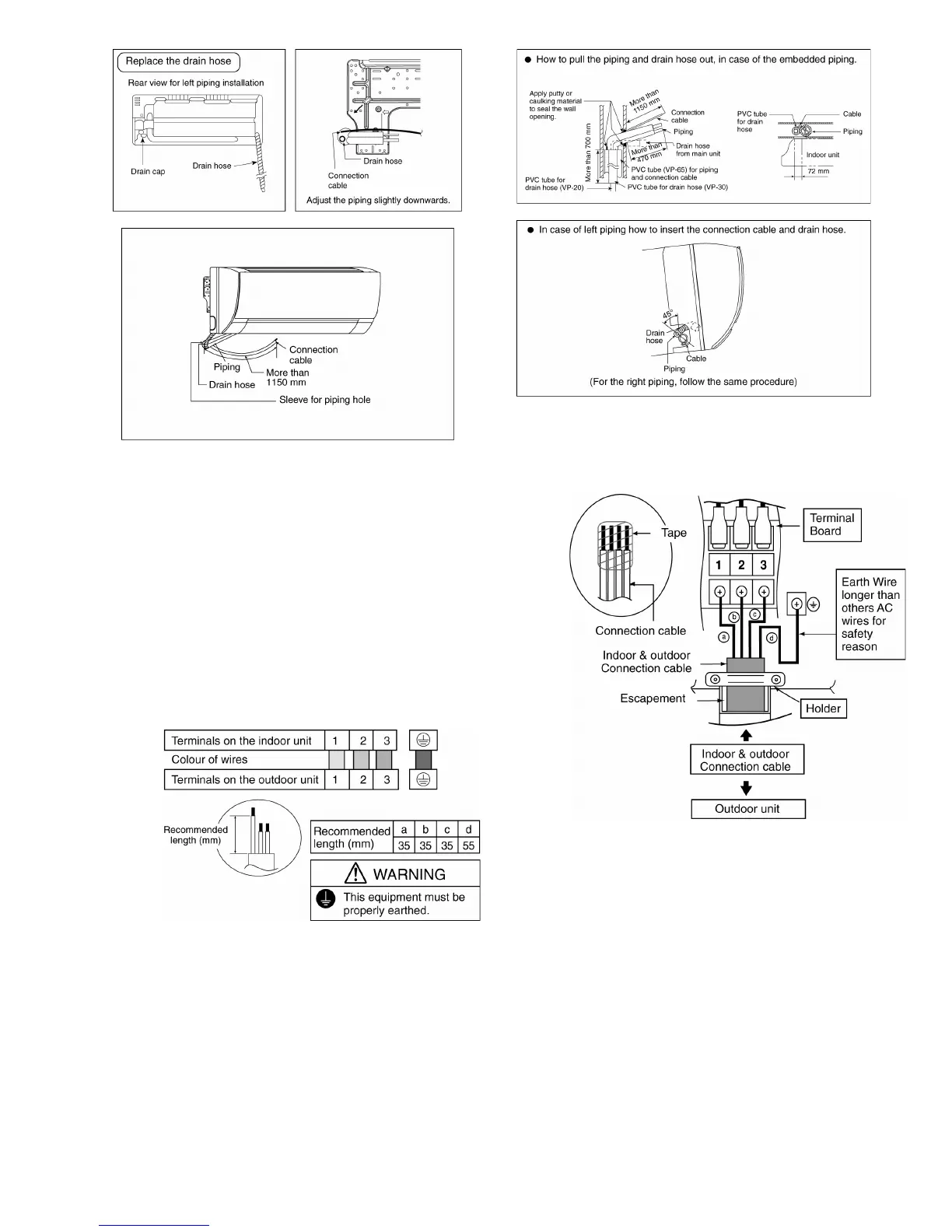 o Ensure the colour of wires of outdoor unit and the terminal Nos. are the same to the indoor’s respectively.