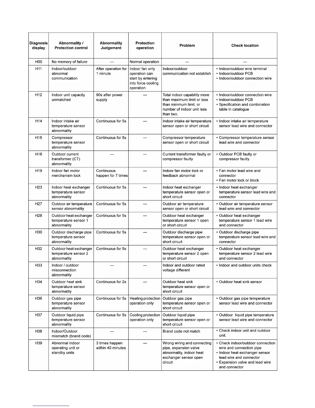 Panasonic CS-E18NKEW - Error Codes Table