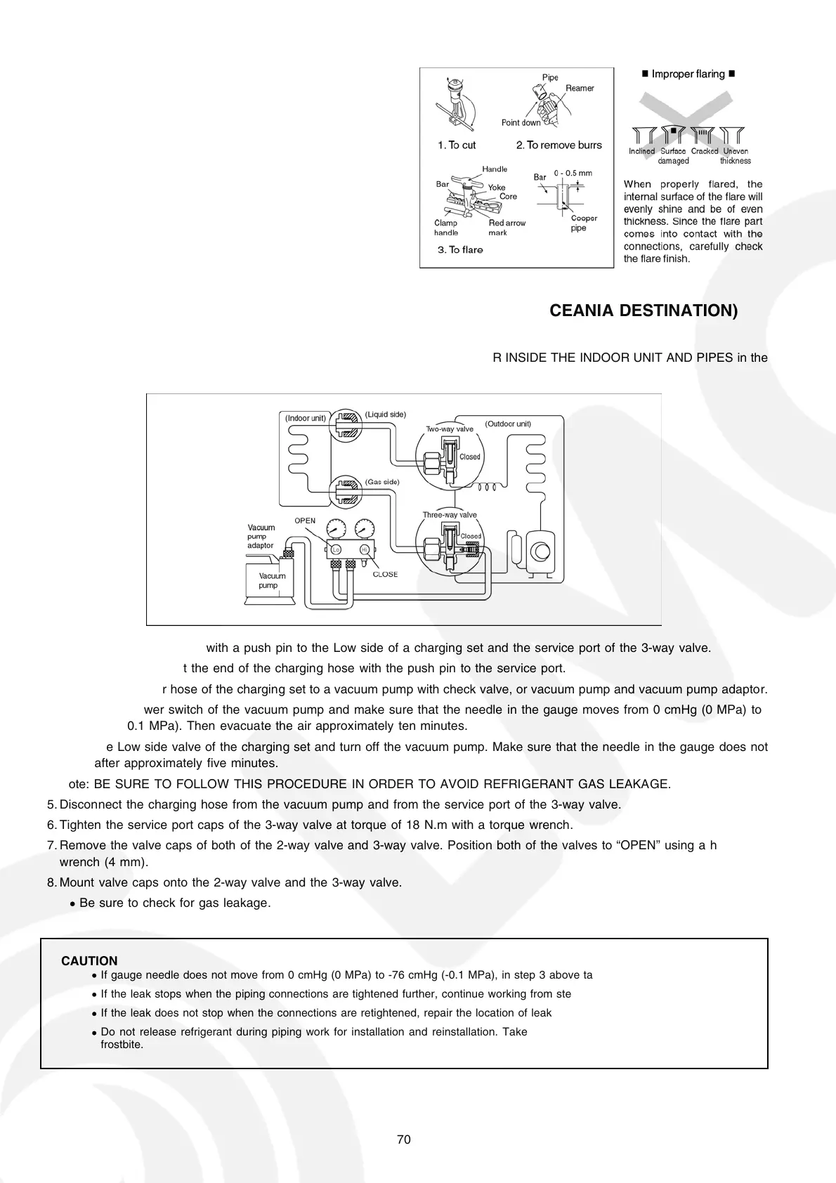 Note: BE SURE TO FOLLOW THIS PROCEDURE IN ORDER TO AVOID REFRIGERANT GAS LEAKAGE.