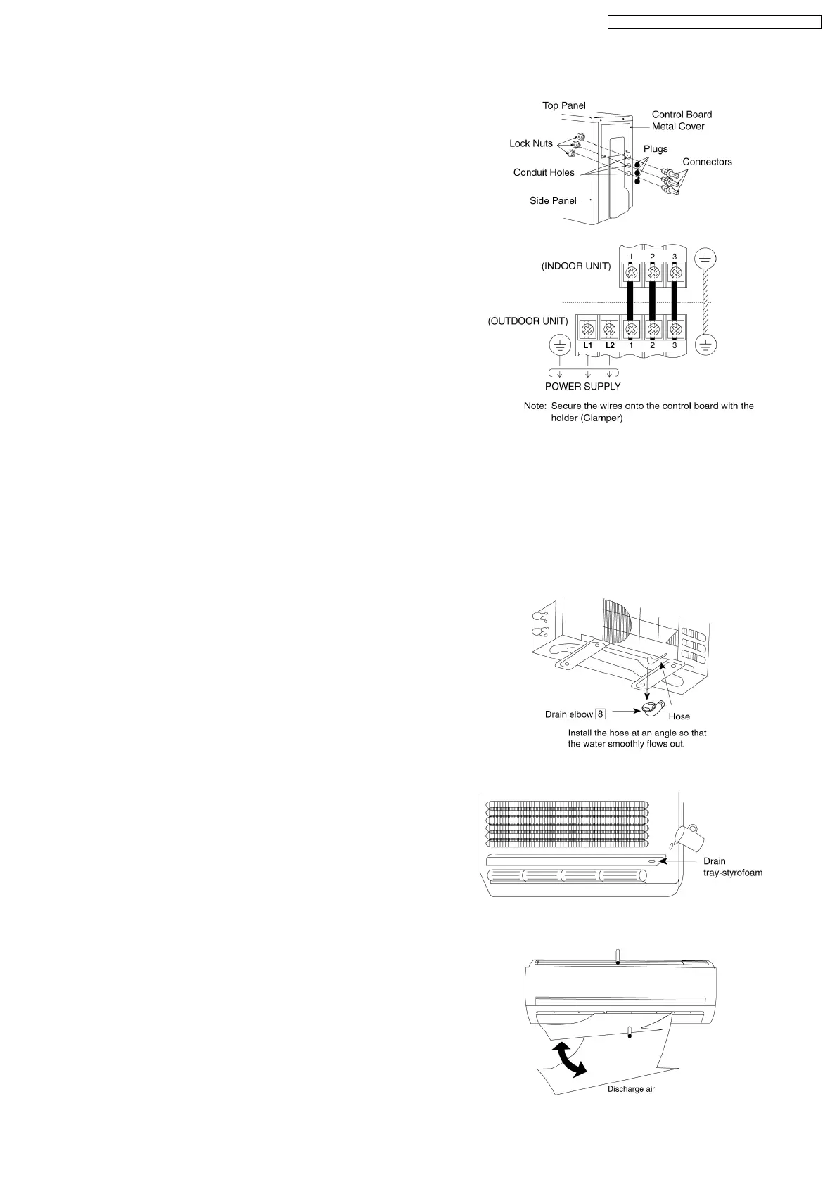 2. If drain hose or connecting piping is in the room (where dew may form), please increase the insulation by using POLY-E FOAM