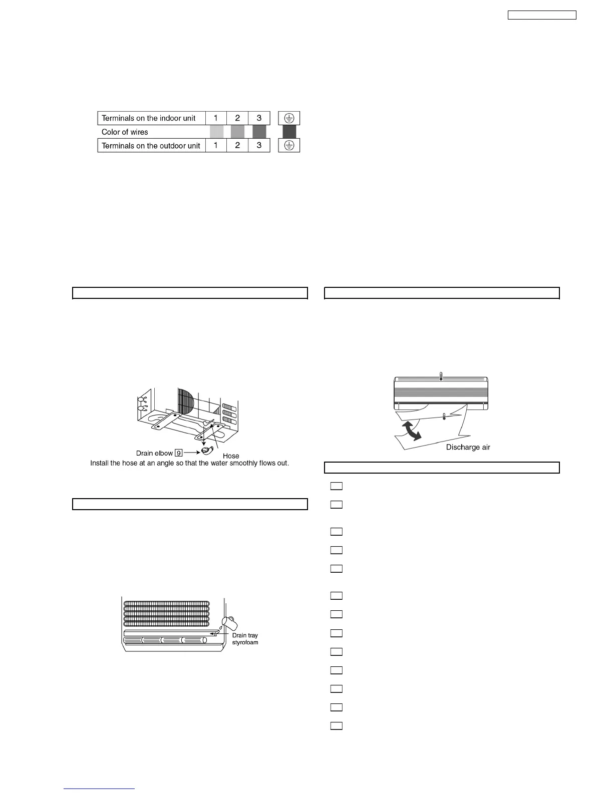 2. If drain hose or connecting piping is in the room (where dew may form), please increase the insulation by using POLY-E FOAM