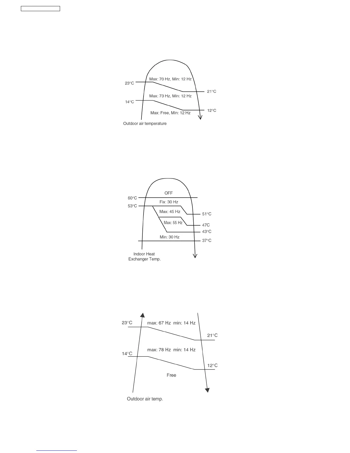 The compressor operating frequency is regulated in accordance to indoor heat exchanger temperature as shown in below figures.