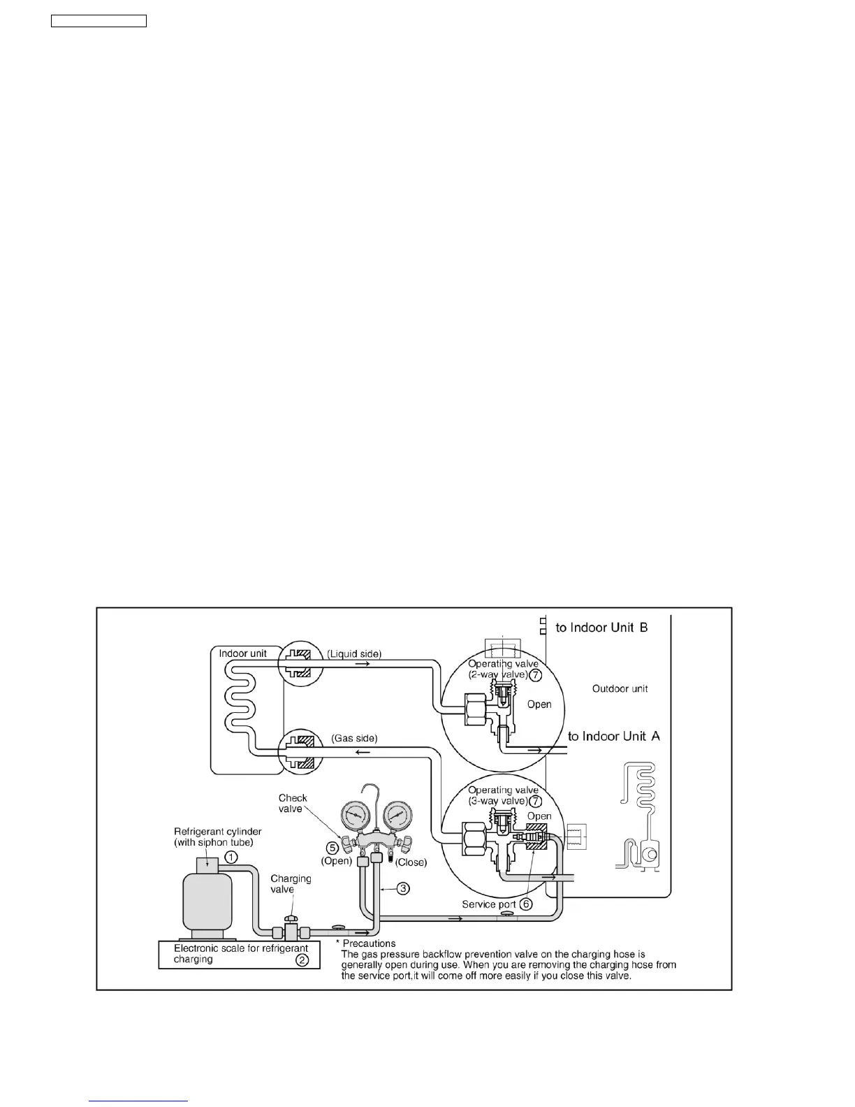 9. If you cannot charge the stipulated amount, operate the unit in the cooling mode while charging a little of the liquid at a time