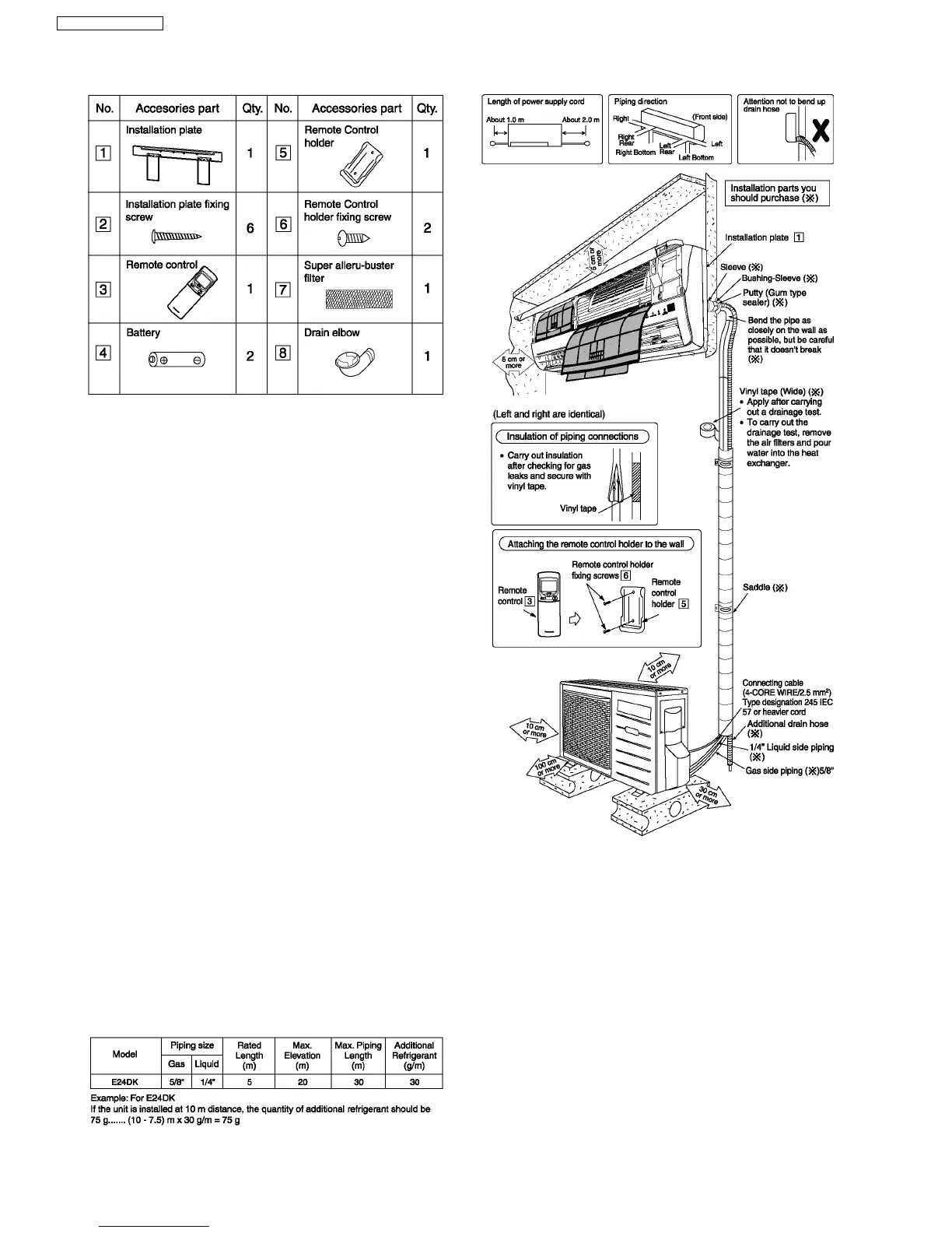 If piping length is over 7.5 m, additional refrigerant