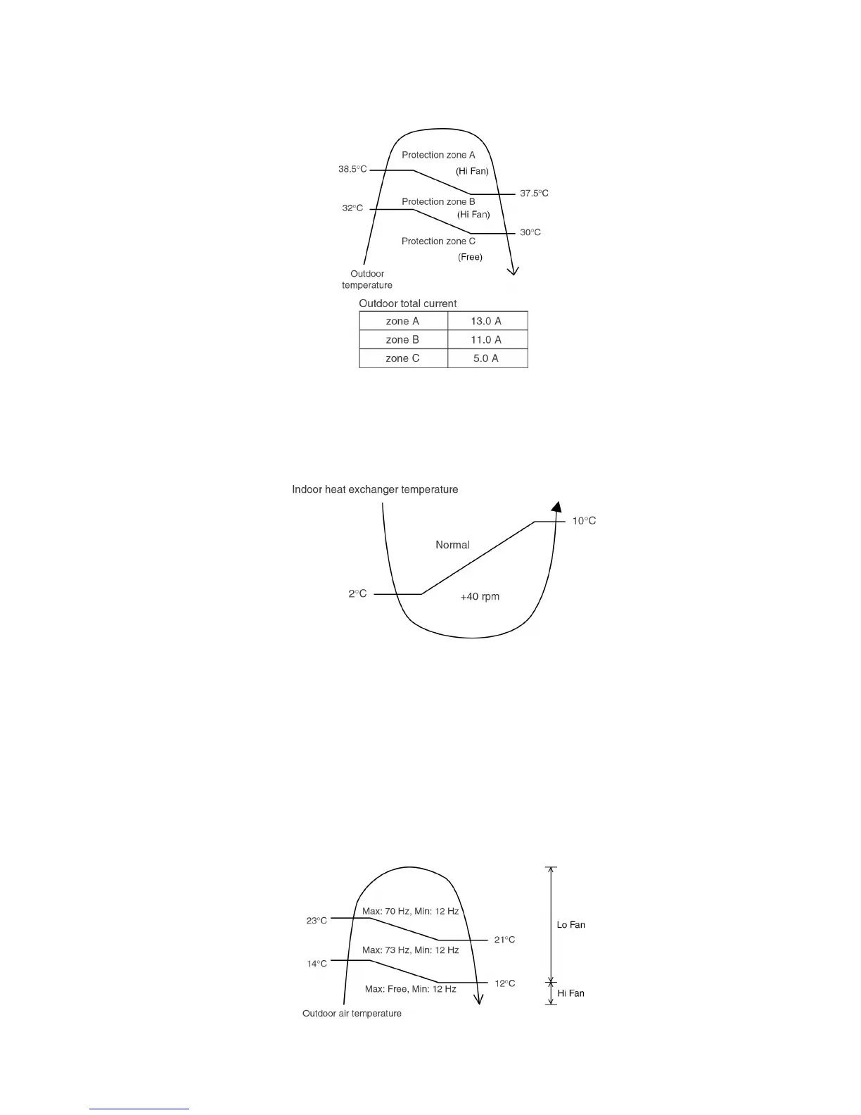The compressor operating frequency is regulated in accordance to the outdoor air temperature as shown in the below figures. This