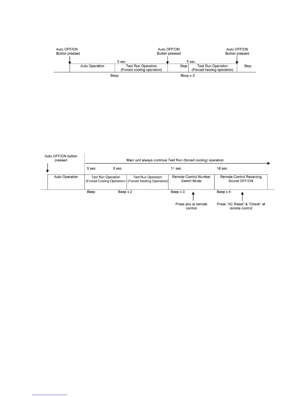 minutes after Forced cooling operation start, the Auto OFF/ON button is pressed for more than 5 seconds. A 2 “beep” sounds