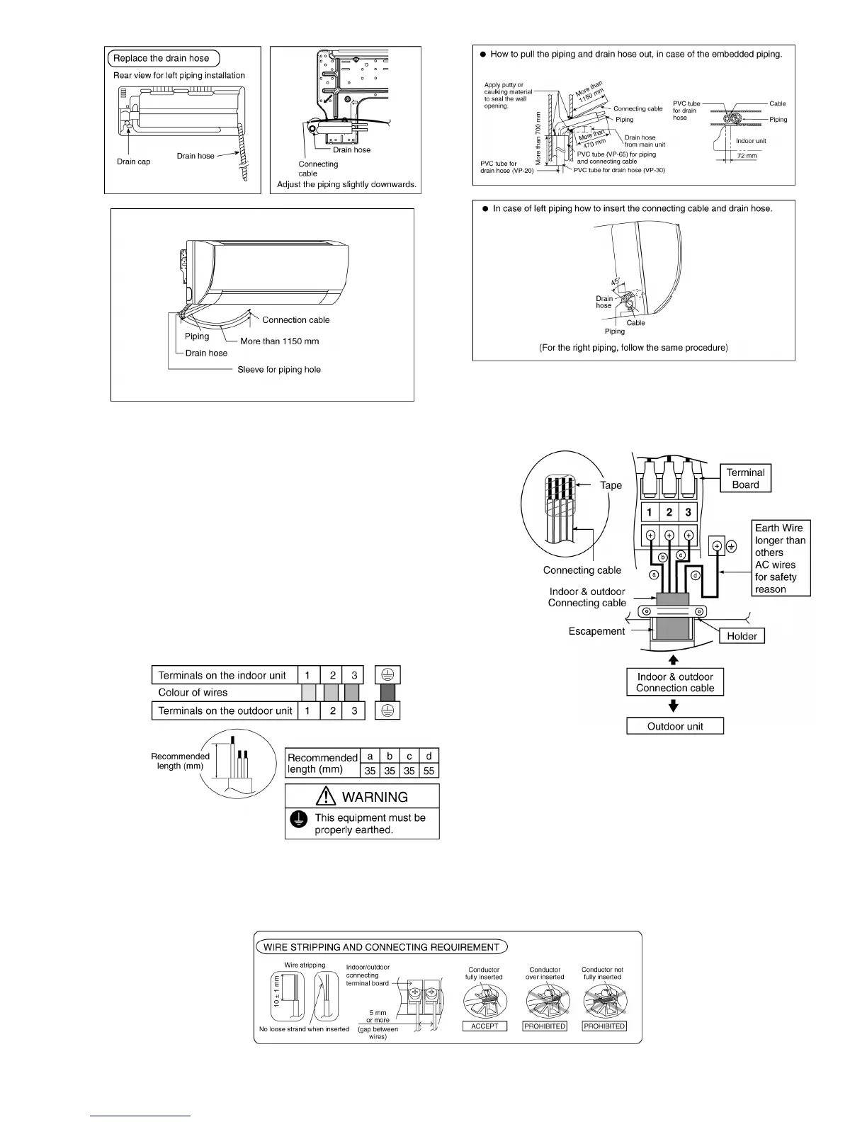 o Ensure the colour of wires of outdoor unit and the terminal Nos. are the same to the indoor’s