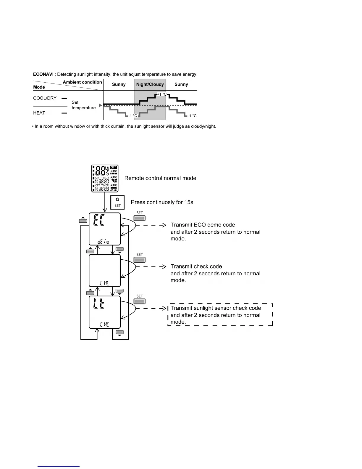 To enable sunlight sensor check mode, during unit is OFF (power standby):