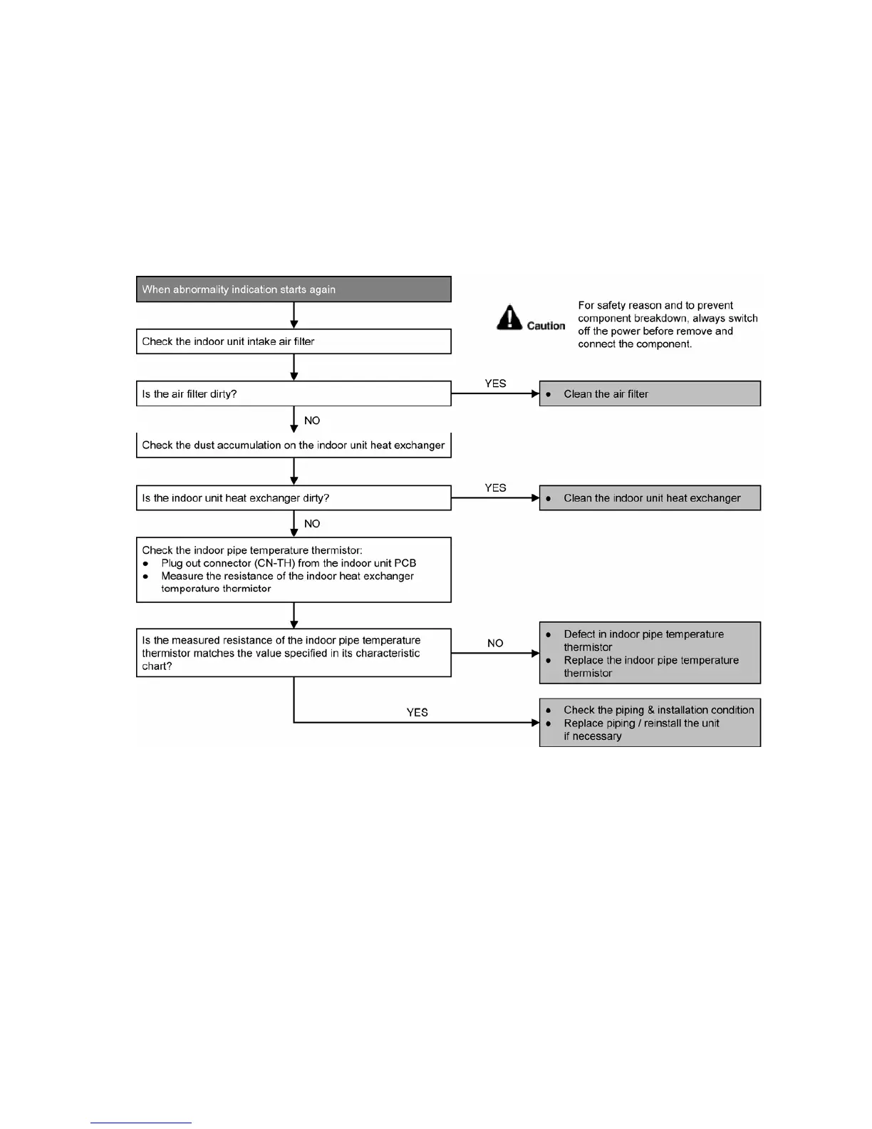 • Indoor high pressure is detected when indoor heat exchanger is detecting very high temperature when the unit is