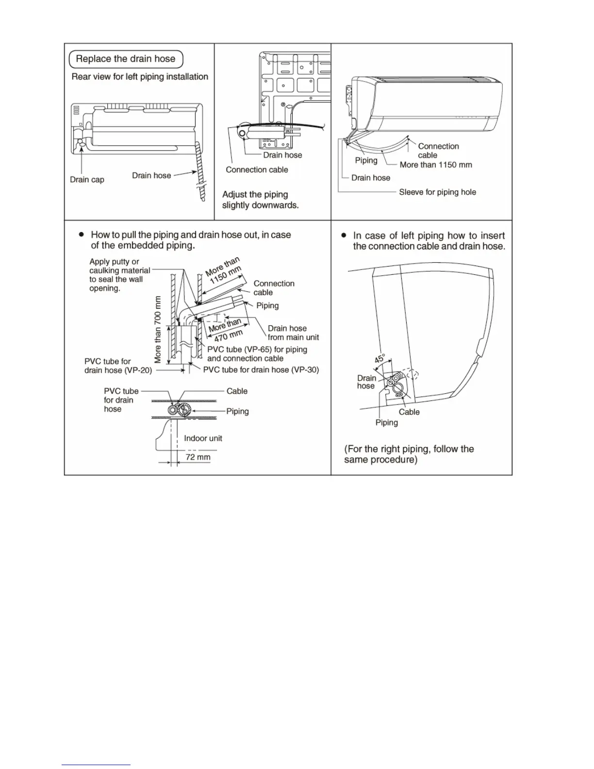 6 Bind all the indoor and outdoor connection cable with tape and route the connection cable via the right