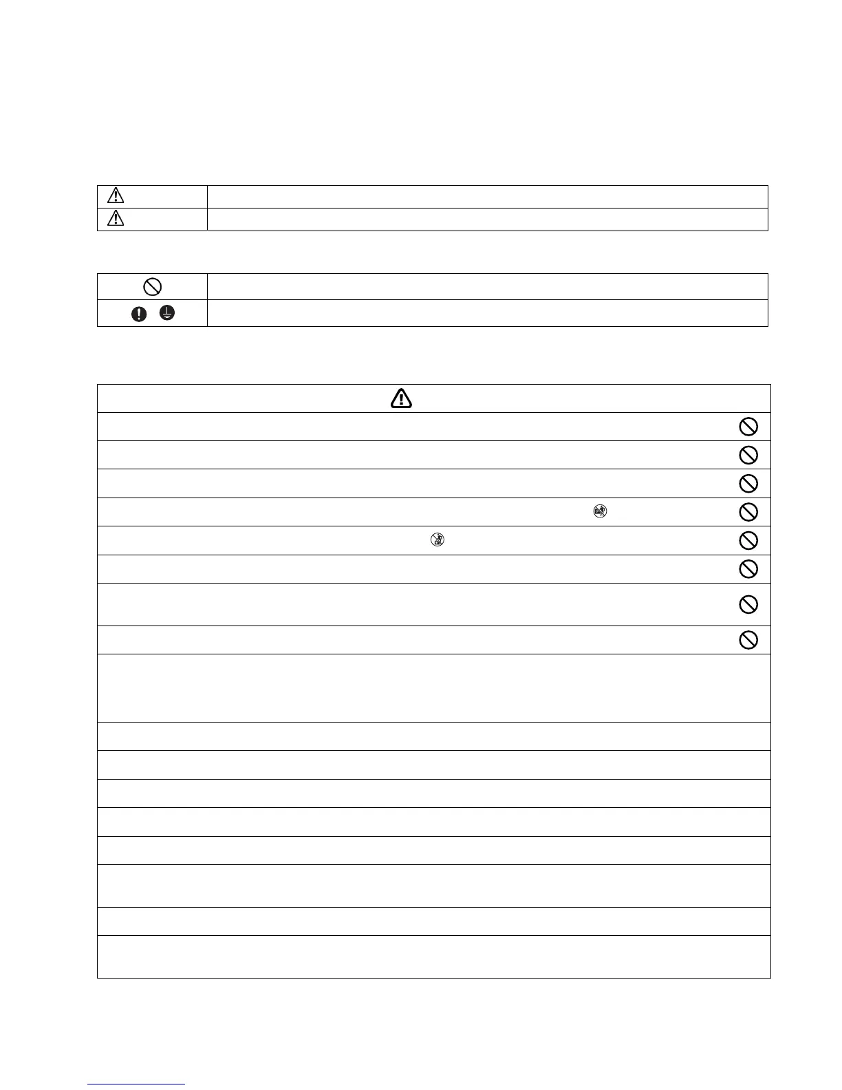 The caution items stated here must be followed because these important contents are related to safety. The meaning of each