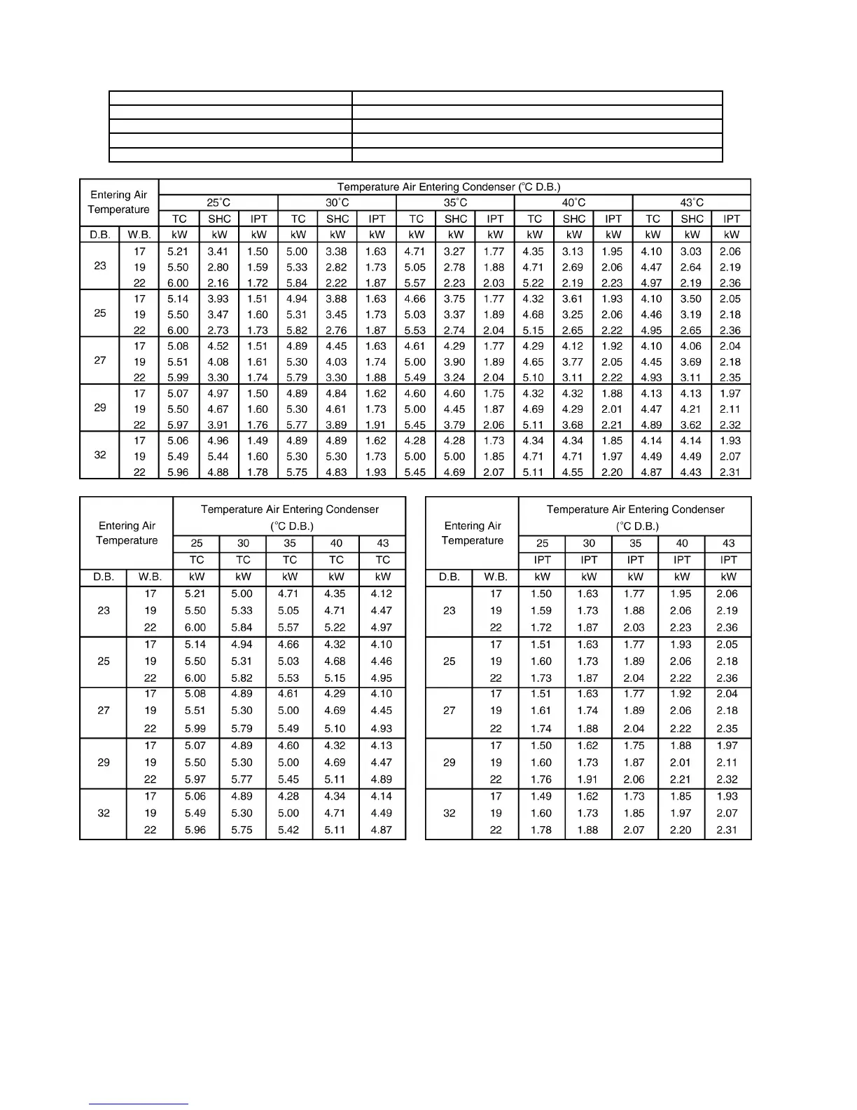 Cooling capacity Indoor temp. 27°C D.B. 19°C W.B.
