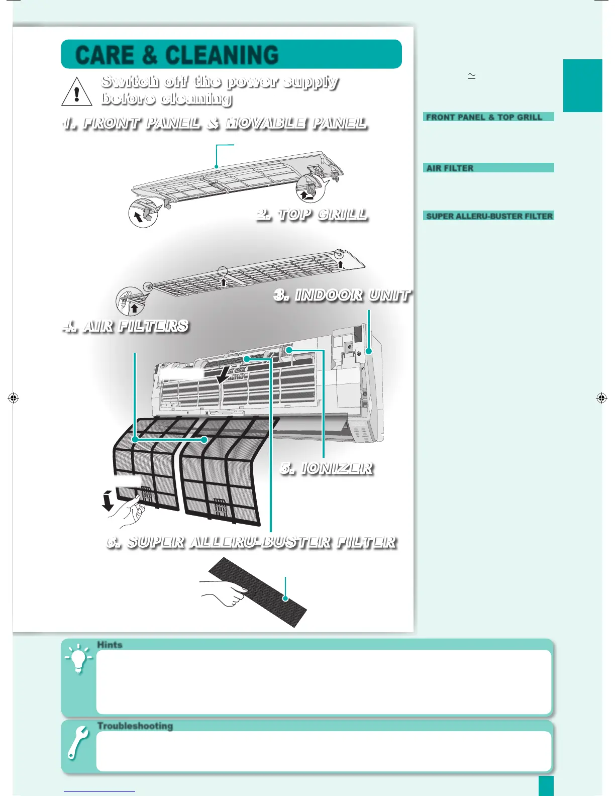 ● The unit will become dirty and the performance of the unit will decrease after used for several seasons. Please consult an