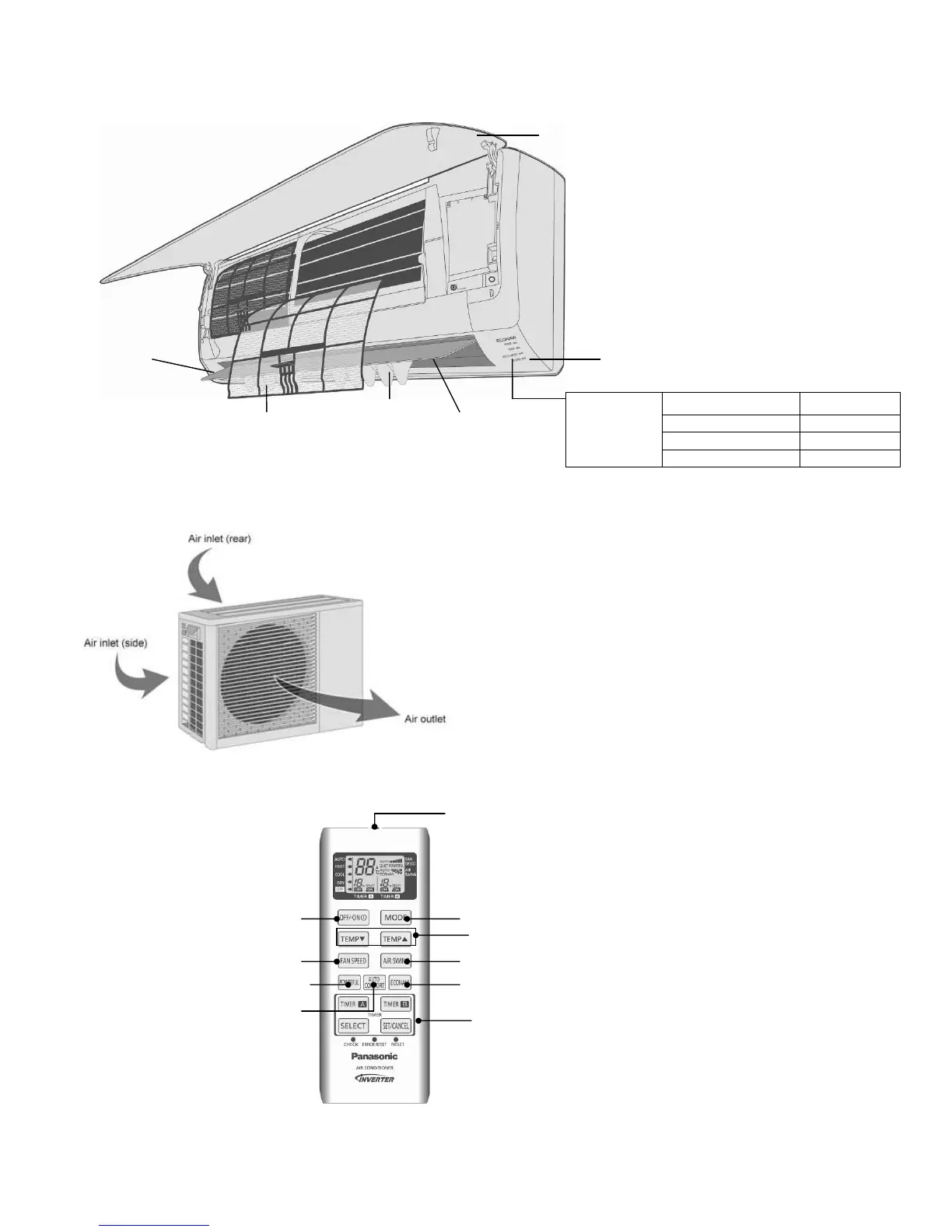 Panasonic CS-LE9NKD - Location of Controls and Components; Indoor Unit Controls and Components; Outdoor Unit Controls and Components; Remote Control Overview