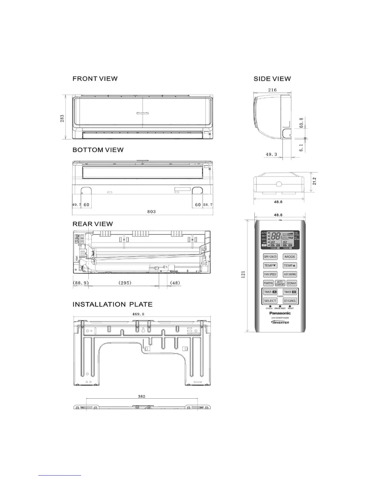 Panasonic CS-LE9NKD - Dimensions; Indoor Unit Dimensions