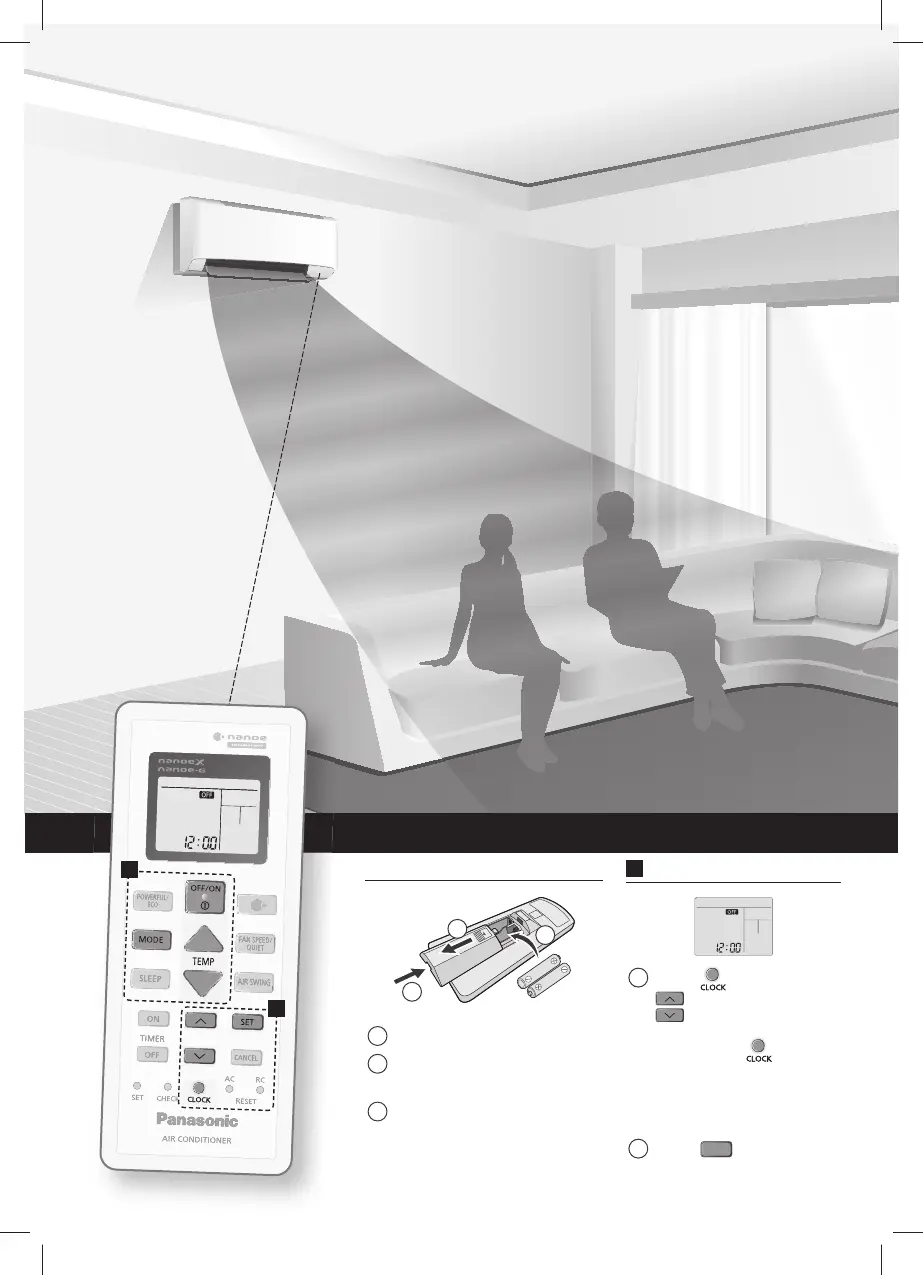 Panasonic CS-LE9WKA - Quick Guide; Inserting the batteries; Clock setting