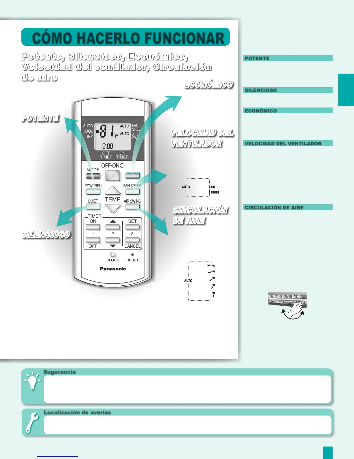 dirección del flujo de aire manualmente.
