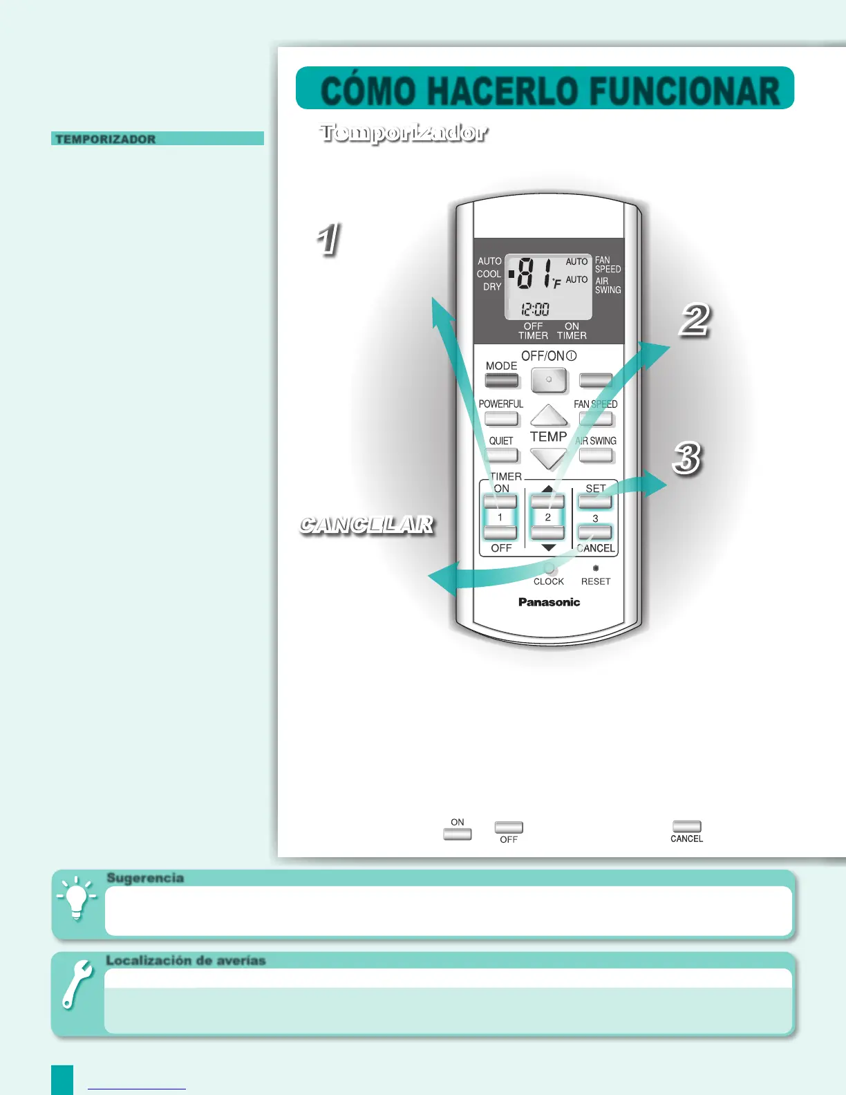 ● Para cancelar el temporizador “ON” o el temporizador