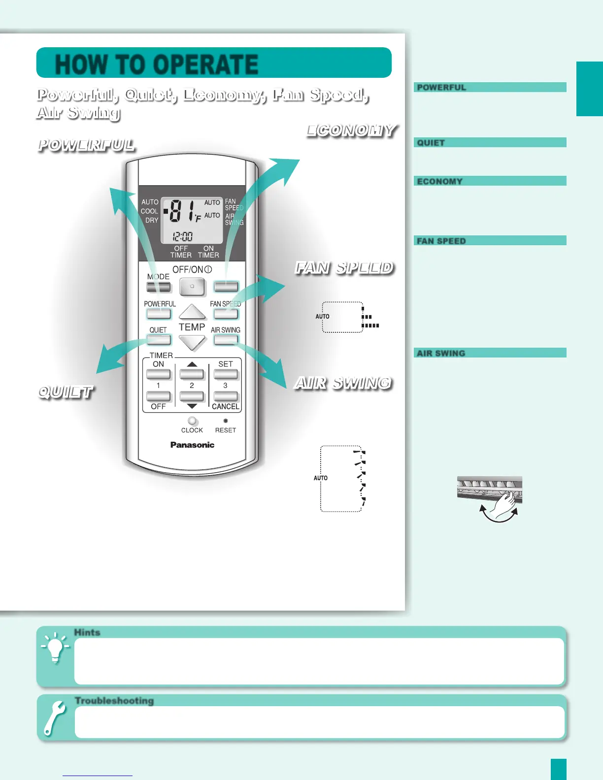 ● Electricity use can be reduced by approximately 10% if you set the temperature 1°F higher than the desired temperature during cooling