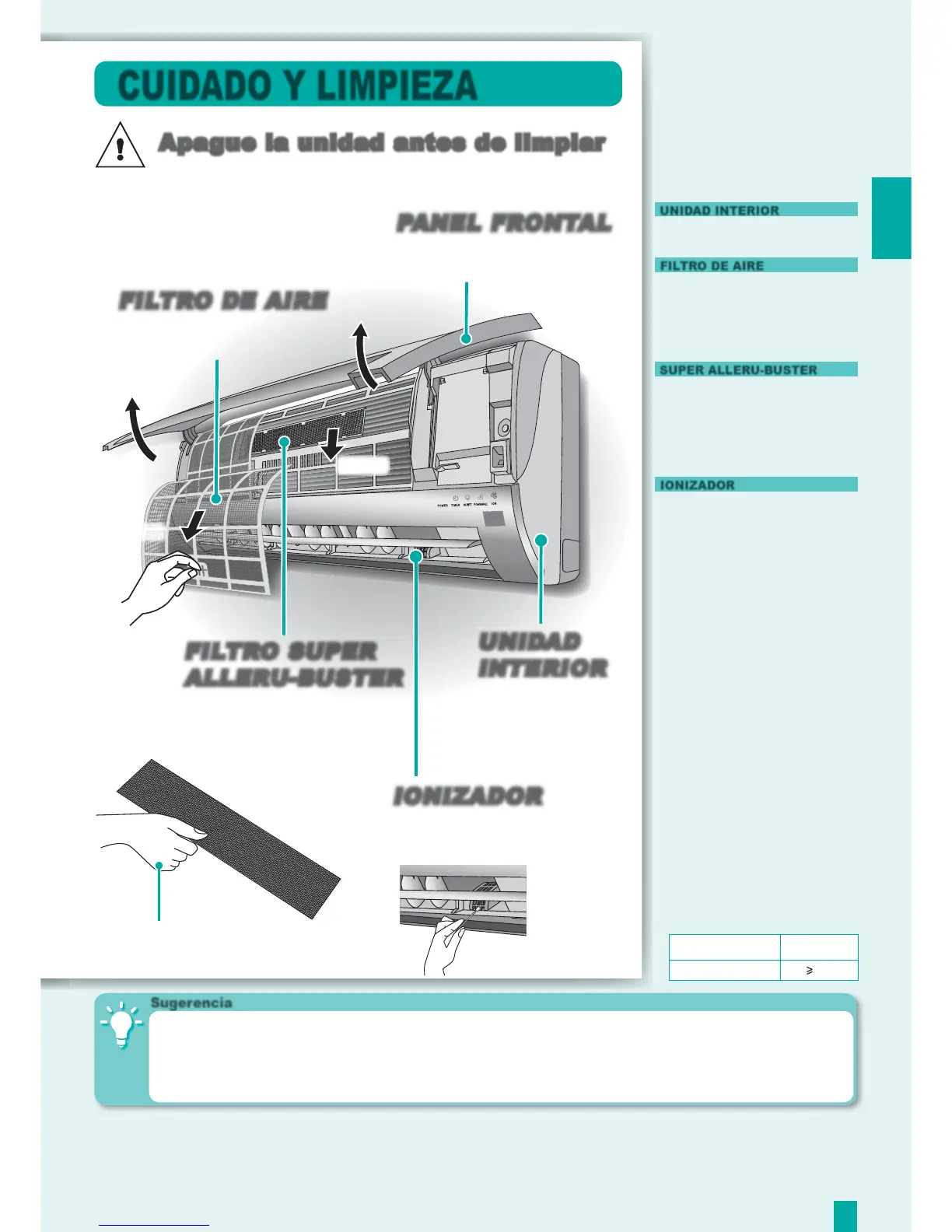 • Se recomienda limpiar el ionizador