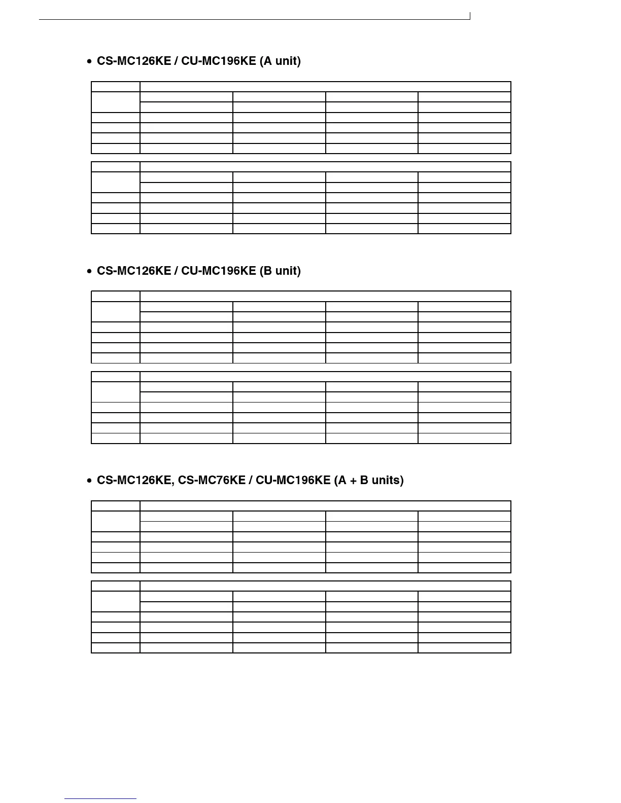 CS-MC95KE CU-MC145KE / CS-MC95KE CU-MC185KE / CS-MC95KE CU-3MC205KE / CS-MC125KE CU-MC245KE / CS-MC76KE / CS-MC126KE CU-MC196KE