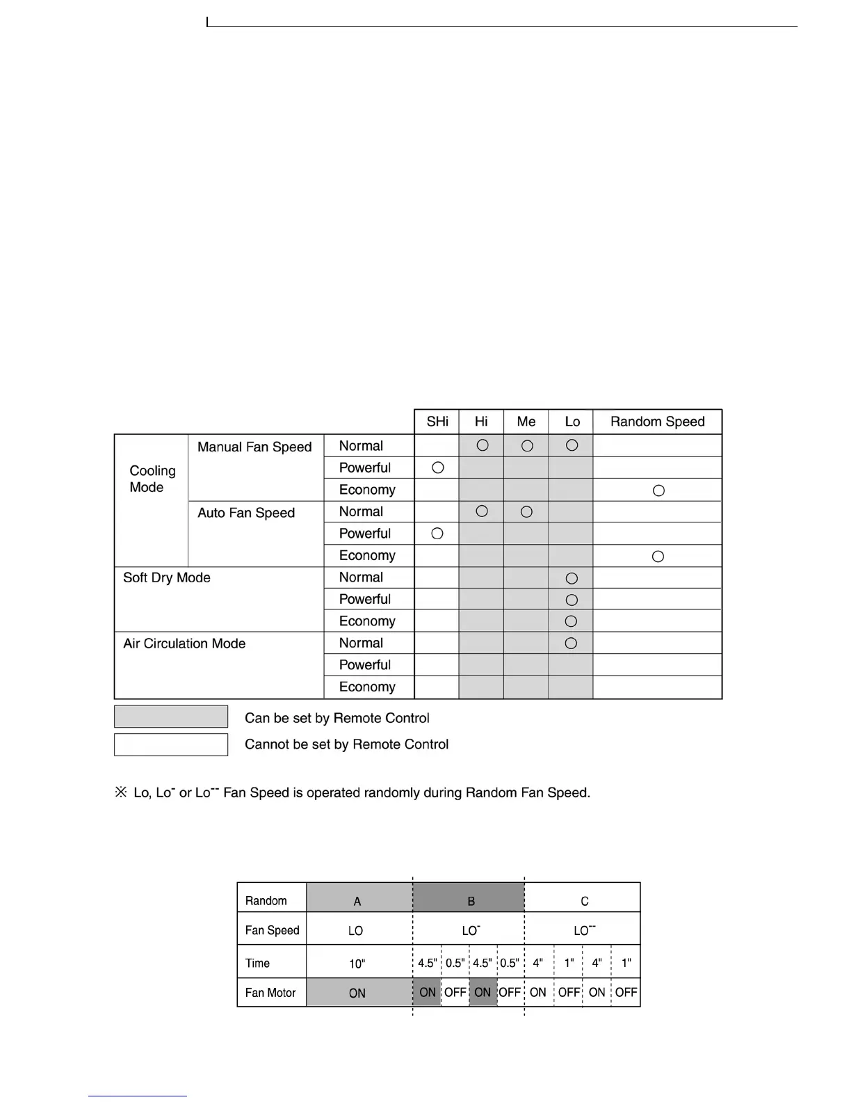 The fan is turning at pattern A or B or C randomly, for an interval of 10” each during Random Fan Speed.