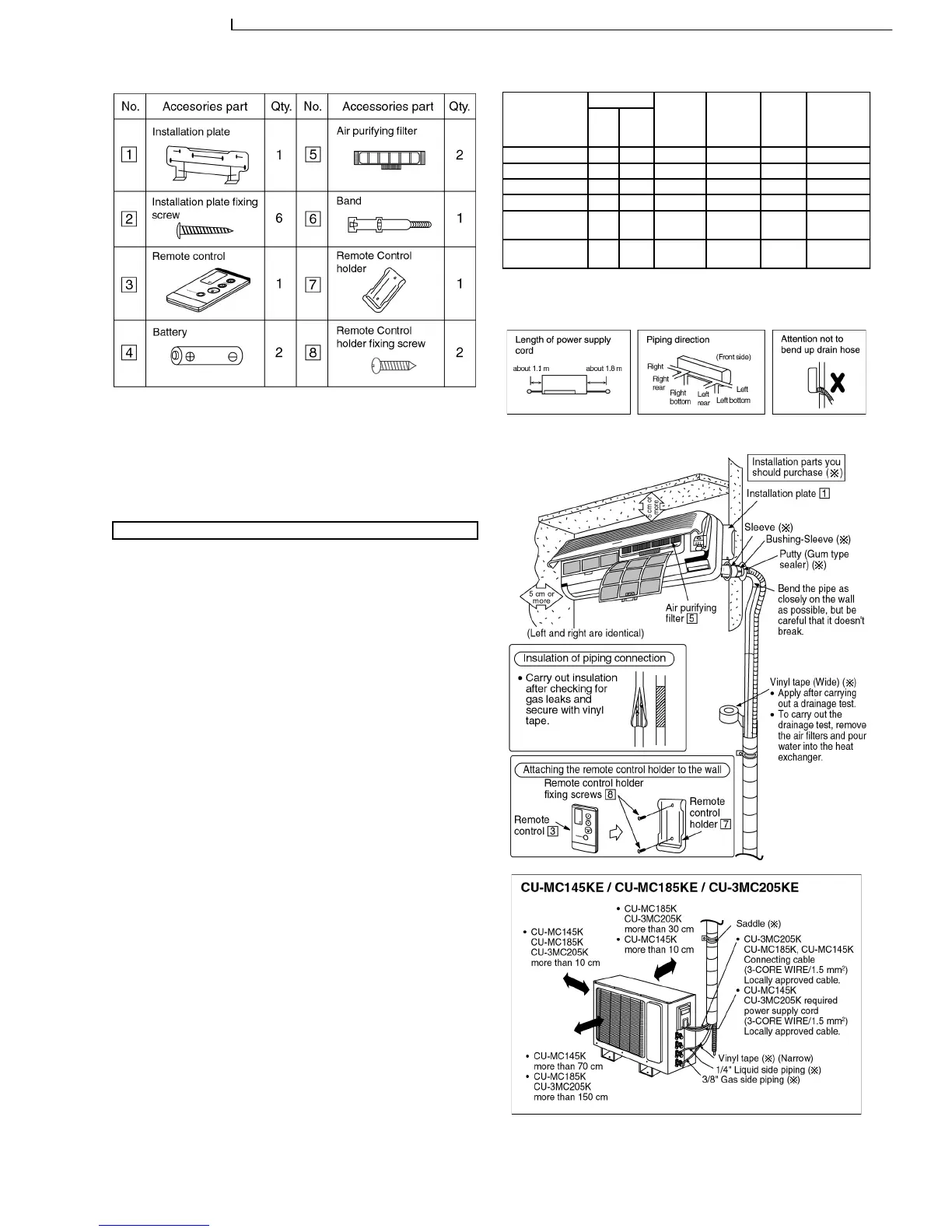 CS-MC95KE CU-MC145KE / CS-MC95KE CU-MC185KE / CS-MC95KE CU-3MC205KE / CS-MC125KE CU-MC245KE / CS-MC76KE / CS-MC126KE CU-MC196KE