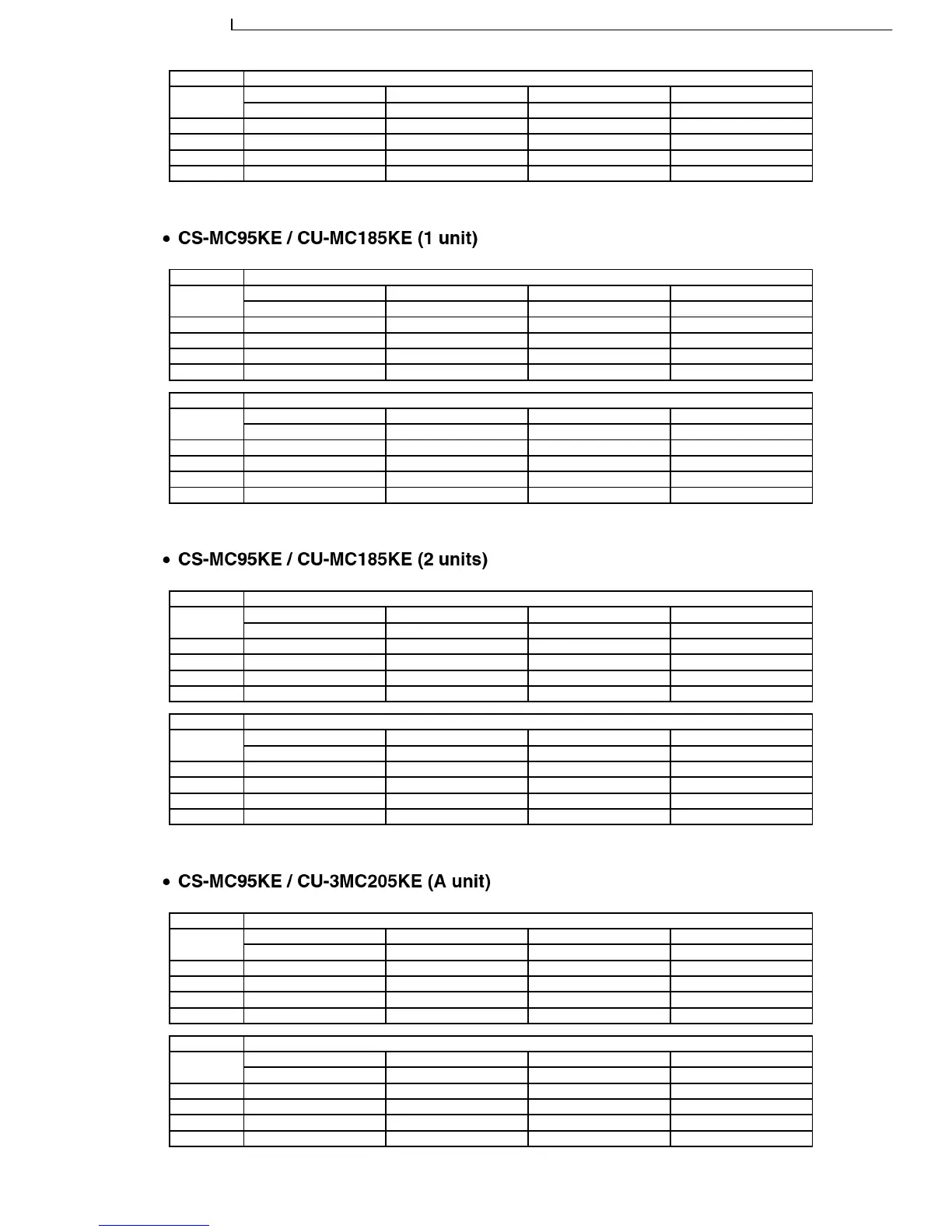 CS-MC95KE CU-MC145KE / CS-MC95KE CU-MC185KE / CS-MC95KE CU-3MC205KE / CS-MC125KE CU-MC245KE / CS-MC76KE / CS-MC126KE CU-MC196KE