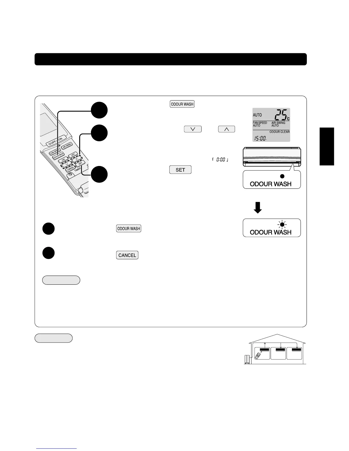 ● Auf dem Display der Fernbedienung wird „ODOUR CLEAR“ angezeigt.