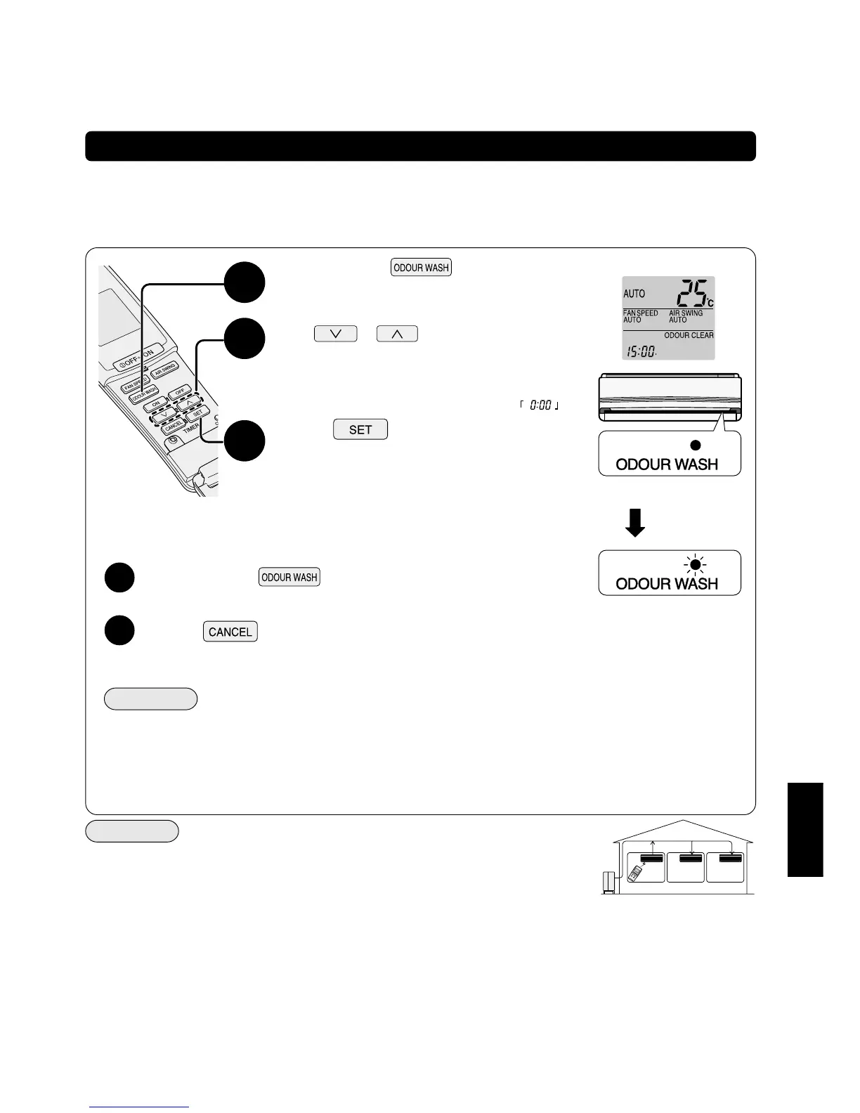 ● “ODOUR CLEAR” aparece en el panel de visualización del mando a distancia.