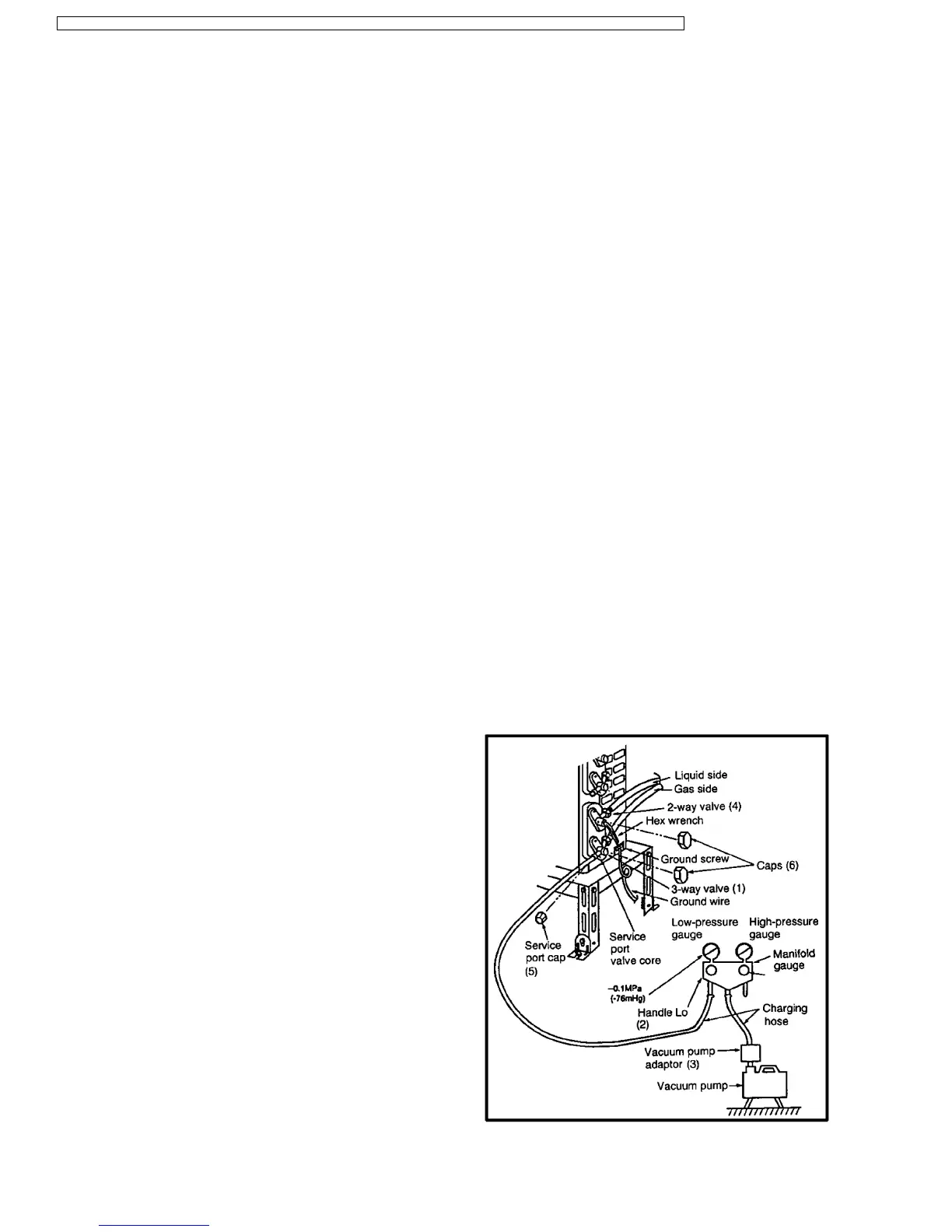 vacuum pump operation, then remove the charging hose that is connected to the vacuum pump adaptor. (Leave the unit in