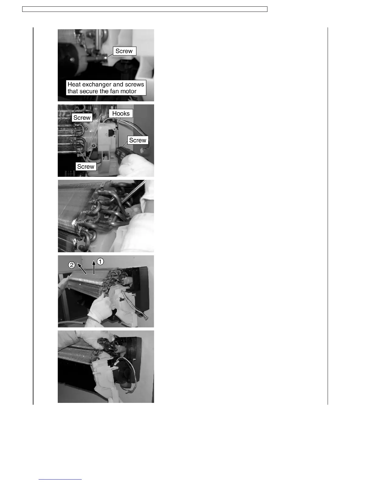 10. Hold down the hook of the heat exchanger using a screwdriver or
