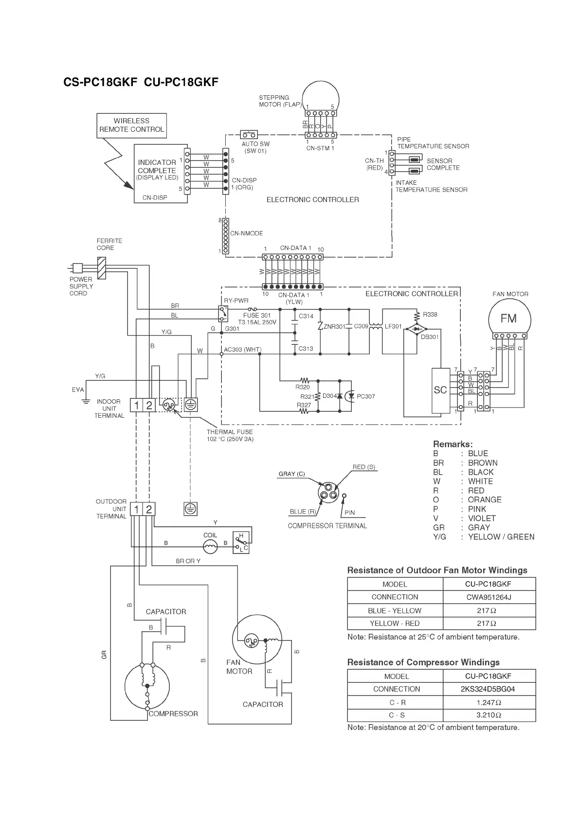 Panasonic CS-PC18GKF - Wiring Connection Diagram