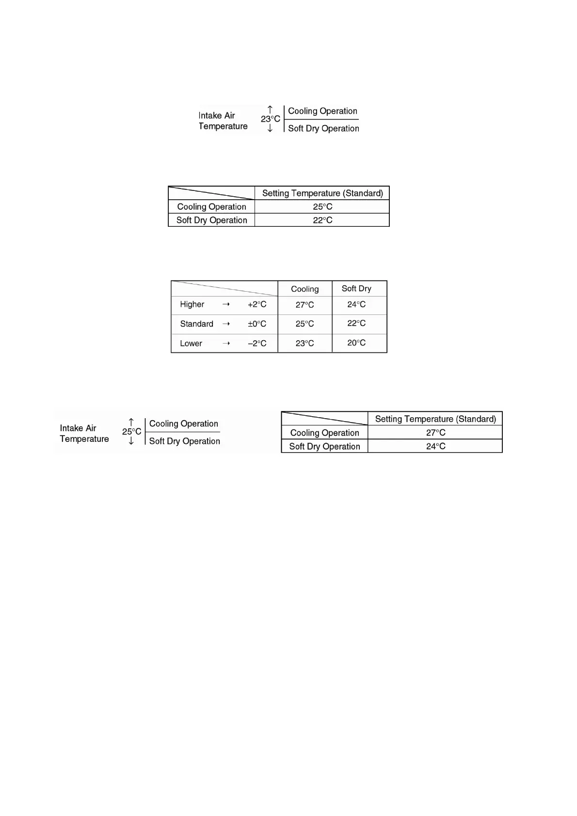 • The setting temperature for all the operations can be changed one level up or one level down from the standard temperature as