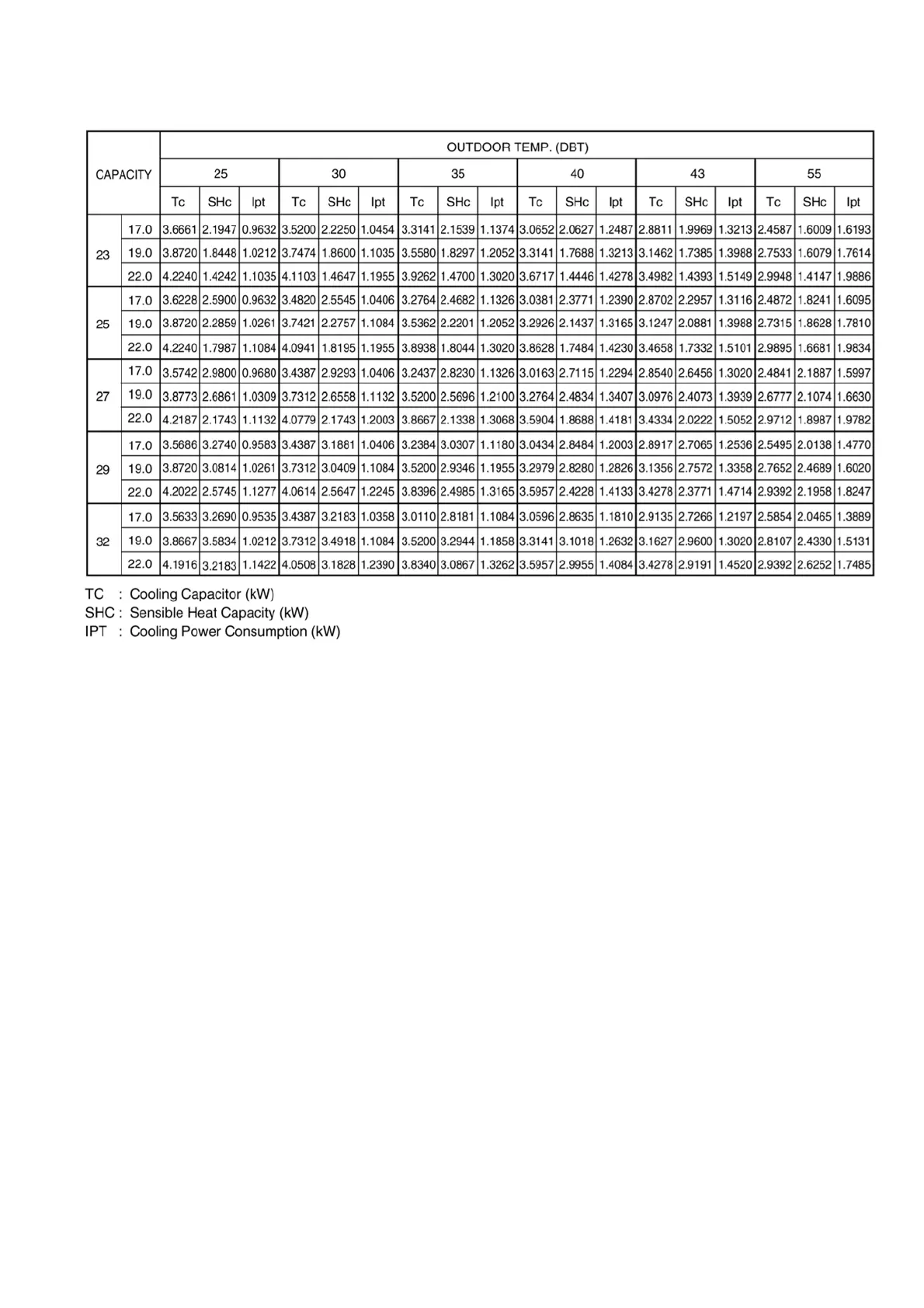 Panasonic CS-PC18MKF - Cooling Capacity Performance Data