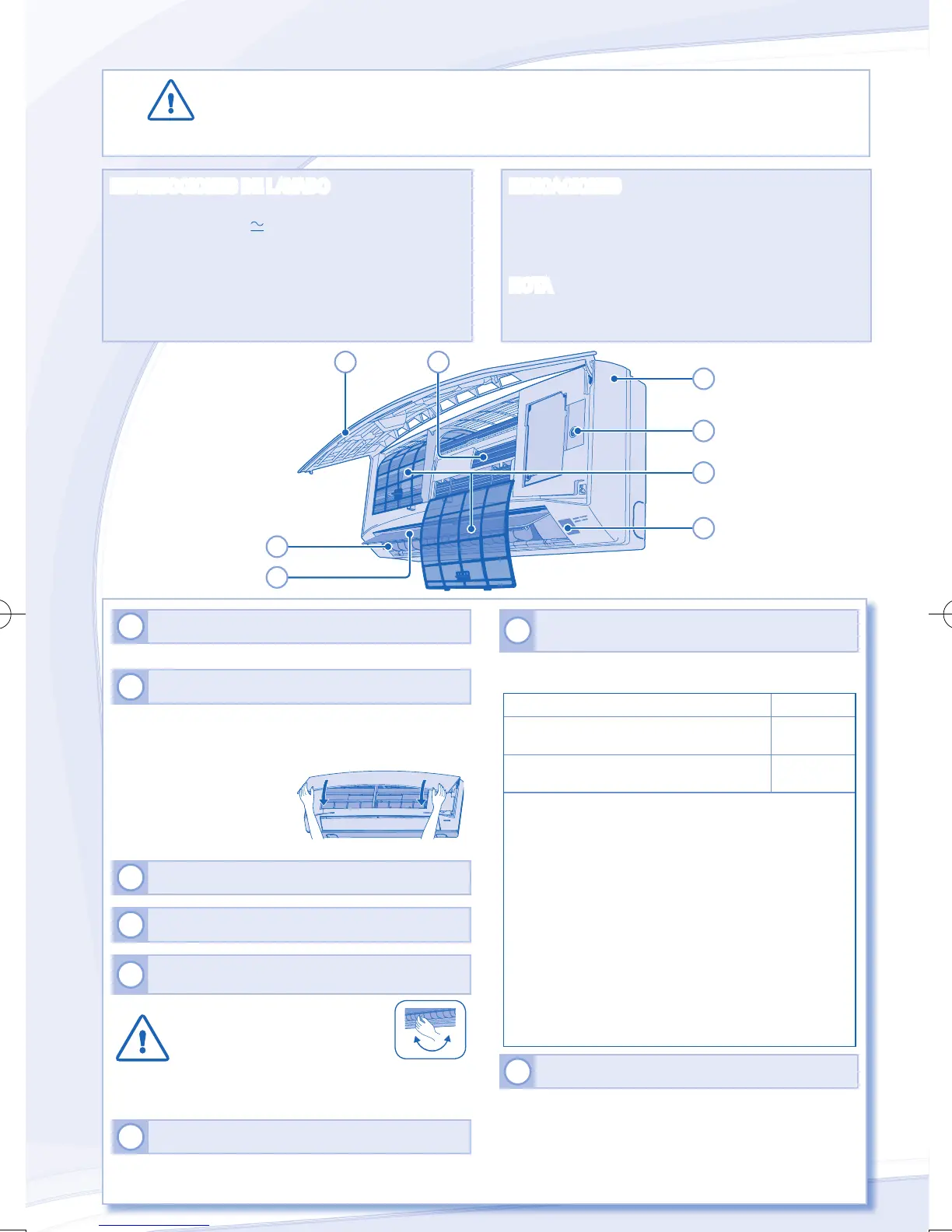 • No toque la aleta de aluminio, las partes aladas pueden causar