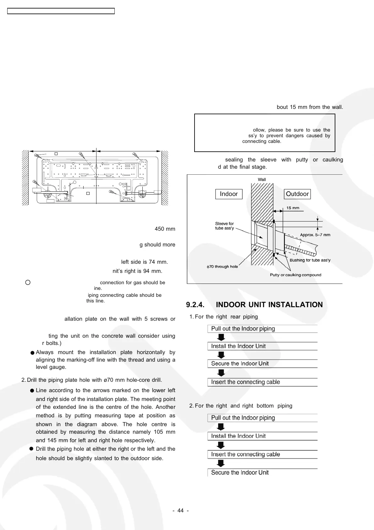 2. Drill the piping plate hole with ø70 mm hole-core drill.