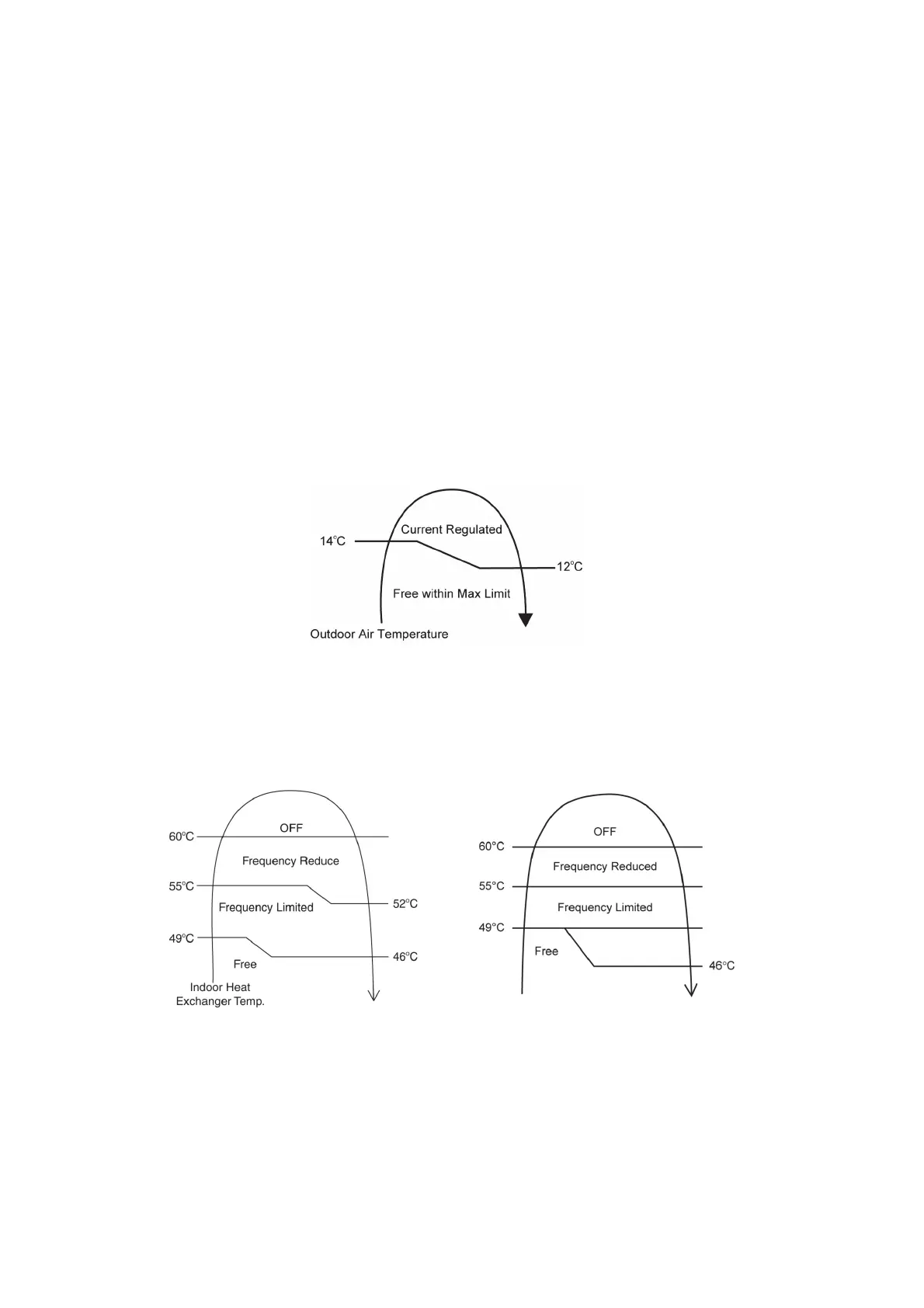 The compressor operating frequency is regulated in accordance to indoor heat exchanger temperature as shown