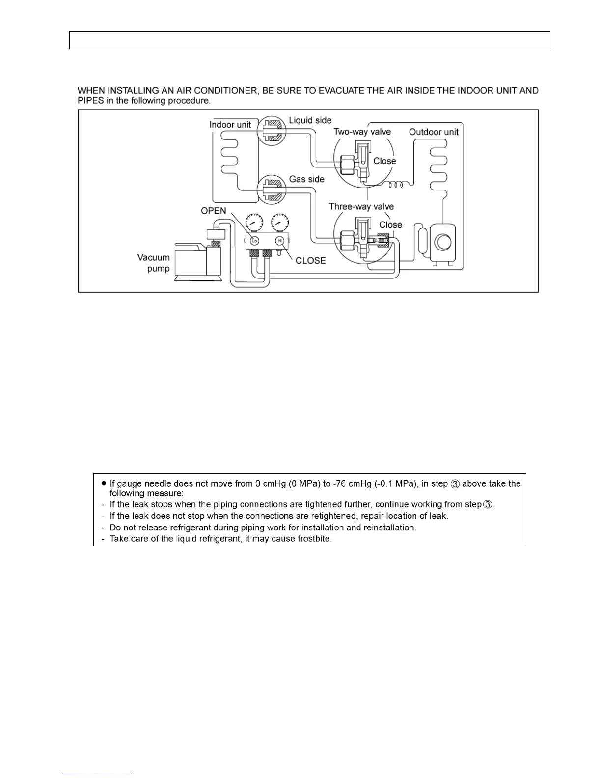 Note: BE SURE TO TAKE THIS PROCEDURE IN ORDER TO AVOID REFRIGERENT GAS LEAKAGE.